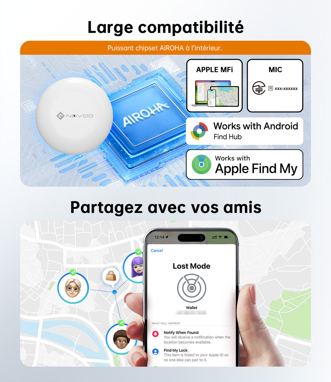 [Confidentialité dès la conception] : Conçu selon les spécifications du réseau Localiser d’Apple, ce tracker utilise un chiffrement de bout en bout pour transmettre des données de localisation anonymisées. [Suivi mondial via le réseau Localiser d’Apple] : Les mises à jour de localisation s’ajustent dynamiquement grâce aux données crowdsourcées du réseau Apple, avec une précision accrue dans les zones peuplées. Traceur Gps Android Air Traceur Tag Lot De 4, Bluetooth Tracker Fonctionne Avec Apple Find My ( IOS Uniquement), Batterie Remplaçable, IP67 Étanchéité Localisateurs D'Objets Pour Valises/Portefeuilles/Clés[weTag Pro Tukio Lucid Tag Review Traceur Bluetooth iOS Air Tracker Tag, 4 pièces Localisateur GPS pour Clés, Portefeuille, Enfants, Animaux, Antiperte, Compact ; Livré dès demain. détails ; Plus... [Mode Objet Perdu] : Une fois activé, enregistrez vos coordonnées (téléphone/email) directement sur l'objet via l'application Localiser. 1 Localisation Globale 2 Trouver à proxlmité 3 Trova Lontano e Naviga 4 Rappel des oubliés 5 Mode Perdu Non compatible avec Android. Nécessite iOS 17+, iPadOS 17+ ou macOS 14+ sur tous les appareils. Tous les appareils Apple compatibles détectant cet objet afficheront votre message personnalisé pour faciliter sa restitution. 1 Contenu 4-PACK 2 Comment Se Connecter 3 Remplacer la Pile 4 Activer Mode Perdu 5 Modifier Coordonnées Aucune entité – y compris Apple ou le fabricant – ne peut accéder à votre identité ou position exacte. Remarque : Fonctionne uniquement avec iOS. Recherche à proximité via Bluetooth] : Le Tracker Intelligent QCOQ utilise la technologie Bluetooth 5.3 avec un haut-parleur intégré (jusqu'à 100 dB max). Activez un son pour localiser vos objets à proximité, ou utilisez Siri pour une recherche mains libres [Système d'Alerte de Séparation] : Si un objet sort de la portée Bluetooth, sa dernière position enregistrée est transmise par notification push (activez « Notifier en cas d’oubli » dans l’app Localiser). [Localisation d'objets partagés] : Partagez de manière sécurisée le suivi d'un objet avec jusqu'à 5 personnes via l'application Localiser d'Apple. [Ce que vous recevez] : 4 * Air Tracker Air Traceur Tag, 4 * Dragonne (Noir), 4 * Anneau porte-clés, 1 * Manuel d'utilisation et un Service Client aimable. Samsung Galaxy SmartTag - Balise Bluetooth anti-perte pour téléphone