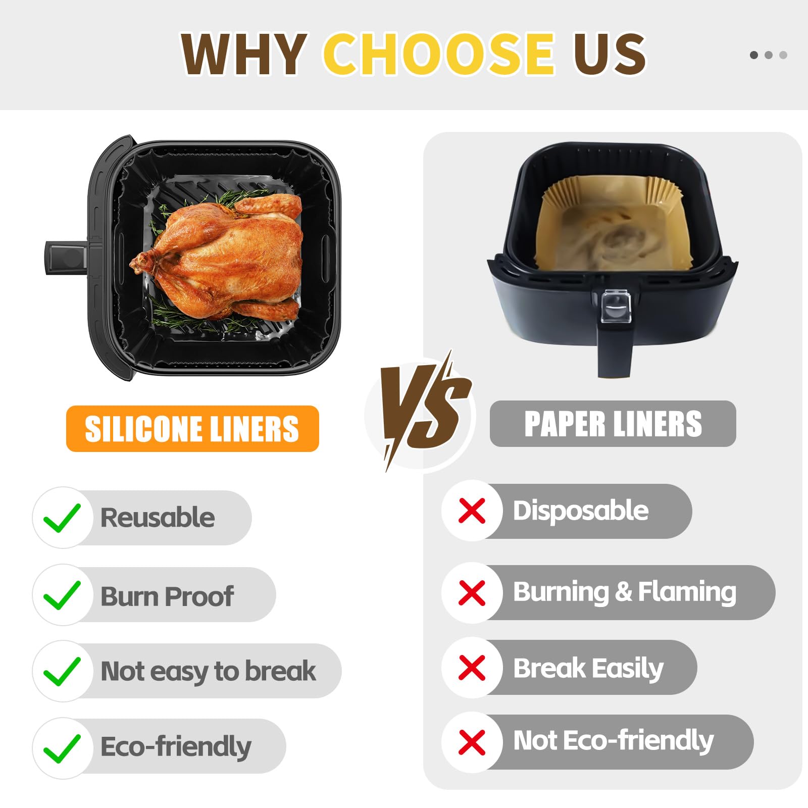 Moule Silicone Airfryer Cosori Airfryer Lot De 2 Moules En Silicone Pour Friteuse À Air Chaud Ninja Moule Pour Friteuse à Air Heißluftfritteuse Cosori Cosori Airfryer-Silikonform (10,8L) - Doppelkammer Für Turbo Tower Cosori Heißluftfritteuse Le Moule En Silicone Airfryer Est Réutilisable, Lavable En Machine, Lavable à L'eau Et Résistant à La Chaleur. Et Elle Ne Prend Pas Le Feu Comme Les... Adaptés à une utilisation dans les fours, les micro-ondes, les réfrigérateurs, les cuiseurs à vapeur et les cuisinières, ils sont d'excellents compagnons dans la cuisine. Conception innovante : dotée d'une rainure qui canalise l'huile le long du bord intérieur du récipient pendant la cuisson. Cela empêche les aliments d'absorber trop d'huile, améliore la circulation de l'air et empêche l'accumulation de saleté et de graisse à l'intérieur de la friteuse à air chaud, ce qui réduit efficacement le temps de cuisson. Moule en silicone pour friteuse à air chaud : spécialement conçu pour les modèles COSORI Turbo Tower Pro et Smart Air Fryer 10,8 L, ainsi que pour les modèles COSORI Air Fryer CAF-DC112-ADE et CAF-DC113S-ADE 6,5 L et 4,3 L, vous permettant de déguster à votre guise des mets délicieux fraîchement préparés. Facile à nettoyer : revêtement antiadhésif, lavable au lave-vaisselle, protège votre friteuse à air chaud des résidus et de la graisse, prolongeant ainsi sa durée de vie. Ils peuvent également être utilisés dans les fours à micro-ondes, les grils, les cuiseurs à vapeur, les fours traditionnels, etc. Remarque : veuillez éviter de retirer le moule en silicone de la friteuse à air chaud directement du panier, car cela pourrait entraîner un déversement des aliments. Petits prix et livraison gratuite dès 25 euros d'achat sur les produits LYHOLKEER. Commandez Lot de 2 moules en silicone pour friteuse à air chaud Airfryer - Accessoires pour Chefman 2L Mini/Cosori 2L/Midea 2L/aeco Cube 2.0 - Insert en silicone réutilisable pour friteuse à air chaud de 1 à 2