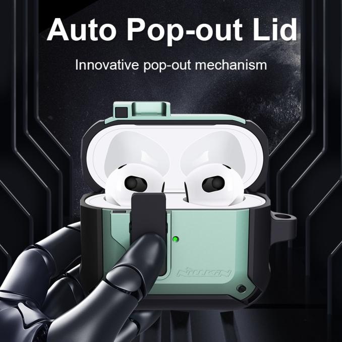 Nillkin Coque pour Airpods 3 avec verrouillage sécurisé, fermeture Compatible avec la charge sans fil - pas besoin de retirer la coque pour recharger. La transparence cristal laisse voir la belle finition blanche des AirPods Coque Avec Mousqueton Porte-clés Nillkin Coque Pour Airpods Compatible Avec AirPods 3, Coque Résistante Aux Chocs Pour Airpods 3, Coque De Protection Robuste Et Rigide Compatible Avec Apple AirPods 3 (noir, AirPods 3 Coque Anti-chocs Pour AirPods Livré avec un crochet en acier inoxydable pour éviter toute perte accidentelle lors des activités de plein air. ue pour Airpods 3 avec verrouillage pour empêcher les écouteurs de tomber. Cette coque est munie d'une découpe très précise pour le port de chargement / recharge sans fil. - Coque de protection et recharge pour les AirPods 3... Étui Nillkin pour Airpods 3 avec verrouillage : spécialement conçu pour les Airpods 3ème génération (2021). ue pour Airpods 3 avec mousqueton, facile à transporter Chargement sans fil convivial : prend en charge le chargement sans fil, la LED avant est ible. Combinaison de douceur et de dureté, toucher micro-givré, résistant à l'huile, antidérapant
