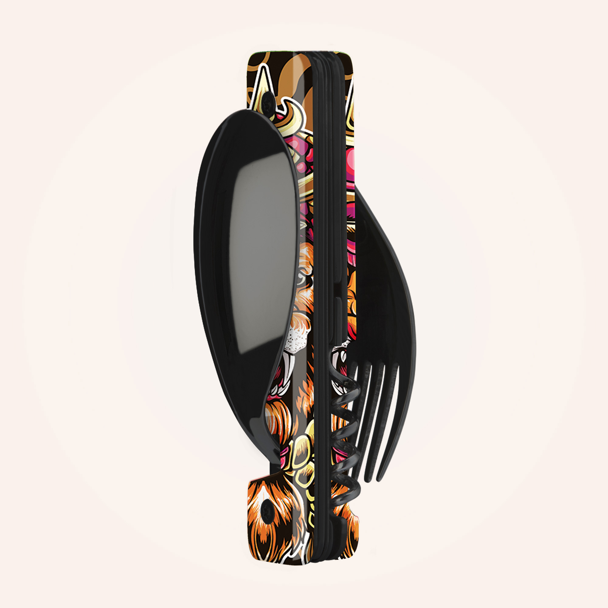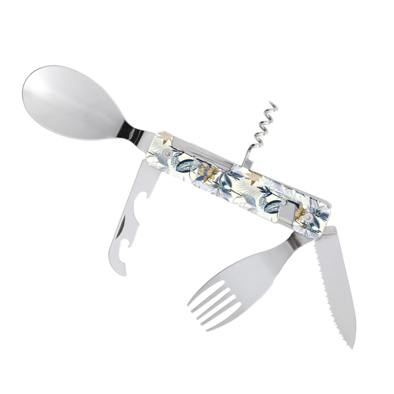 AKINOD 13H25 Set de couverts pliants multifonctions inox nomades HIBISCUS Ensemble De Couverts De Poche Aimanté Akinod Multifunktionales Besteck 13 Set Acier Inoxydable Martensitique Whether you're enjoying a picnic in the park, hiking through the mountains or having lunch at the office, the akinod multi-functional cutlery set combines style, functionality and durability Améliorez votre expérience culinaire où que vous alliez avec cet ensemble de couverts magnétiques multifonctions akinod Alliant élégance française et design pratique, cet ensemble compact 6 en 1 est votre compagnon idéal pour les aventures en plein air, les voyages ou les déjeuners quotidiens. Akinod Multifunktionales Besteck 13h25, Camo grün · Höhe: 4 cm · Länge: 10 cm · Breite: 3,5 cm · Gewicht: 0,15 kg · Farbe: Schwarz · Serie: 13H25 · Material: 2CR14... La poignée en polymère transparent ajoute une touche de sophistication, tandis que l'assemblage magnétique garantit que les ustensiles restent ensemble, ce qui les rend faciles à ranger et à transporter. Fabriqué en acier inoxydable martensitique 2CR14 de haute qualité, l'ensemble comprend un couteau avec une lame micro-dentelée, une fourchette à cinq dents, une grande cuillère, un tire-bouchon, un ouvre-boîte et un décapsuleur.