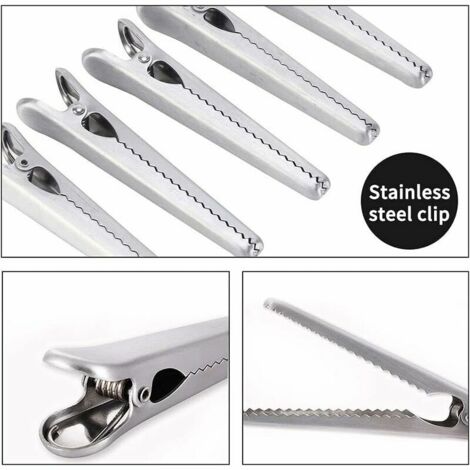 Idéal pour la cuisine, le bureau ou l’école. Les sacs, documents ou photos restent bien fixés, sans glisser ni se détacher. Elles protègent de l’air et de l’humidité, prolongeant la conservation et le goût de vos aliments. Réutilisables et écologiques, ces pinces remplacent avantageusement les clips en plastique jetables. Sollbry 12 Pièces Pince Sachet Alimentaire, Pince Alimentaire Pince Alimentaire Inox 1152cm Clip Fermeture Sachet Clip Fermeture Cuisine Reutilisable Pour Emballage Cuisine Bonbons Snack 85455813 Ressort puissant & maintien sécurisé:Équipées d’un mécanisme à ressort renforcé, ces pinces assurent une fermeture fiable. Idéales pour sceller vos sachets alimentaires et préserver la fraîcheur de vos produits, elles conviennent aussi parfaitement à l’organisation des documents, photos ou étiquettes. Acier inoxydable de qualité supérieure:Fabriquées en acier inox 430 robuste et antirouille, nos pinces de fermeture conservent leur brillance et leur... Compactes et faciles à ranger, elles constituent un accessoire indispensable pour organiser votre maison, bureau et activités quotidiennes. Découvrez les pinces sachet alimentaire Strehknewen 76 mm, fabriquées en acier inoxydable 430 de haute qualité. Préserve la fraîcheur des aliments:Avec une largeur de 76 mm, elles sont parfaites pour fermer les sachets alimentaires. Fermeture Réutilisable Pour Sachets Cuisine Pince Sachet Alimentaire, 5PCS Pince Cuisine Inox, Pince Fermeture Sachet Alimentaire Pour Le Rangement à Domicile, Bureau, Sacs, - Maison Clips Métalliques Cuisine Ce lot de 6 pinces assorties (2 designs de 3) est idéal pour refermer hermétiquement vos sachets de nourriture, qu'il s'agisse de céréales, de café, de biscuits... Lot pratique de 12 pièces:Chaque set comprend 12 pinces multiusages.