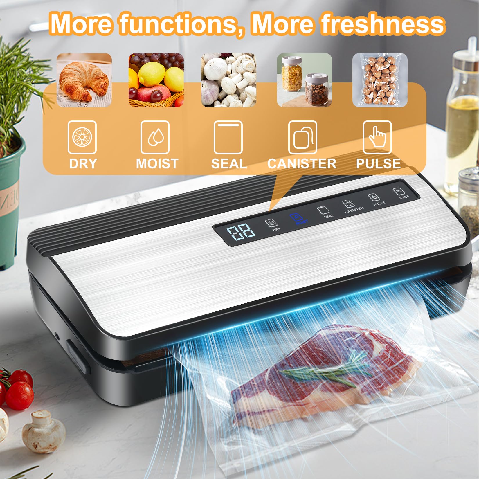MULTI-FONCTION TOUT EN 1:Cette sous videuse alimentaire offre des fonctions polyvalentes pour tous les besoins en matière de conservation des aliments. Mesliese Machine Sous Vide Alimentaire 90Kpa Puissant Appareil de Mise MEILLEUR PARTENAIRE DE CUISINE : La machine a sous vide comprend 15 sacs, vous permettant de commencer à conserver vos aliments dès réception. Machine Scellage Large 13mm Machine Sous Vide Alimentaire, Avec 10 Sacs Sous Vide,Appareil De Mise Sous Vide 90257048 Machine Sous Vide 90kPa Double Pompe Scellage 13mm Avec Sacs Elle atteint son niveau d'aspiration maximal en 10 secondes, éliminant tout l'air pour conserver vos aliments frais 8 fois plus longtemps. Choisissez le mode Vac&Seal sec ou humide en fonction du type d'aliment pour garantir une fraîcheur plus longue. Grâce à la réduction de l'exposition à l'air, ces appareils prolongent considérablement la durée de conservation des aliments, limitant ainsi le gaspillage... Remarque : pendant le fonctionnement, veuillez ouvrir la machine après que tous les voyants des boutons se soient éteints. Son bac amovible et lavable permet de recueillir les excès de liquide et les résidus pendant le processus de mise sous vide, puis est facile à nettoyer. En stock. Livraison Express possible avec Amazon Premium. Livraison gratuite. 40,60 € TVA incluse SCELLAGE PLUS LARGE, AUCUNE FUITE D'AIR:Dotée d'une bande de scellage extra-large de 13 mm, cet appareils de mise sous vide forme un scellage robuste et hermétique qui élimine les fuites d'air, permettant ainsi de conserver vos aliments plus longtemps. Le mode Vac ou Seal empêche l'humidité et l'écrasement afin de conserver les aliments délicats. Le nettoyage n'a jamais été aussi facile, garantissant que votre machine reste hygiénique et prête pour votre prochaine tâche Elle aspire et scelle les aliments plus rapidement et plus hermétiquement que les modèles traditionnels. Qu'il s'agisse de légumes, de viandes, de pains, de chips ou de sauces, vous pouvez les conserver et permettre à toute votre famille de profiter de repas plus sains.