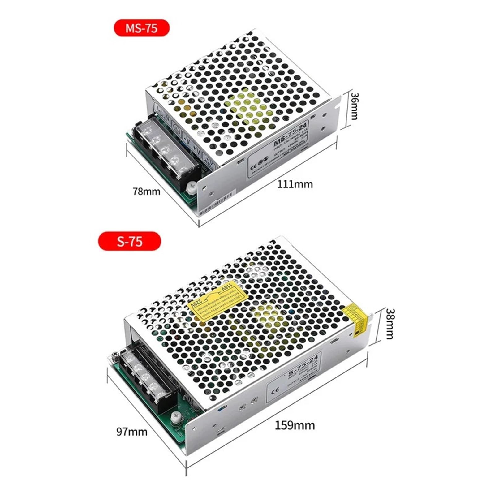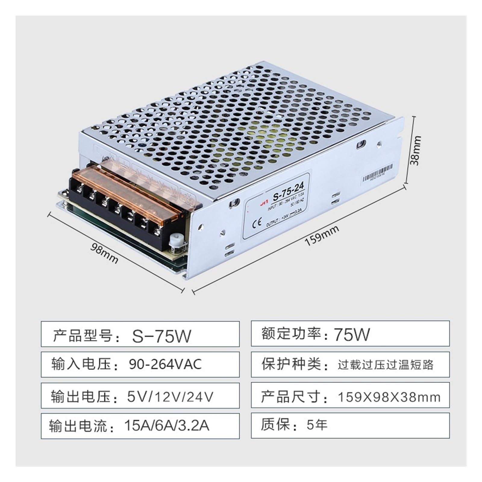 ZKLGS Alientation à découpage, Alientation de Coutation CC 5V 12V... Son type de sortie garantit simplicité et facilité d'utilisation., 5., Lar gamme d'applications : adaptée à une lar gamme d'applications, cette alimentation à découpa est idéale for une utilisation dans l'électronique, les télécommunications, les systèmes d'automatisation, l'éclaira LED, etc. Sa polyvalence et sa fiabilité en font un choix de confiance for les professionnels et les amateurs à la recherche d'une source d'alimentation fiable. Transformateur AC/DC 5V 12V 15V 24V KAI-Alimentation à Découpage LED BERM Alimentation De Commutation LED Bloc Alimentation Compact 75 Watts Son rendement élevé garantit des performances fiables et permet d'économiser de l'énergie , 2., Options de sortie polyvalentes : avec la possibilité de basculer entre différentes sorties de tension (5 V, 12 V, 15 V et 24 V), ce mini transformateur ultra fin à sortie (numéro de modèle MS-75-24) offre une flexibilité for divers appareils électroniques. 75W 5V/6A 15V/2.3A -15V/0.5A 90-264VAC/120-373VDC Alimentation à découpage ; Certifiée: ISO, CE ; Pouvoir(W): 72 ; Tension de sortie(VDC): 5,15,-15 ; Courant de... Courant de sortie0-10ANuméro de modèleMS-50-5, MS-50-12, MS-50-15, MS-50-24Le type de sortieCÉLIBATAIREPuissance de sortie1 - 50WPuissance de sortie50 wattsTaille111*78*36mm, 1., Haute efficacité : cette alimentation à découpa de 75 W est dotée d'une technologie avancée, lui permettant de convertir efficacement l'alimentation CA 110 V/220 V en alimentation CC avec différentes sorties de tension (5 V, 12 V, 15 V et 24 V). Alimentation de commutation LED YOSOO - AC 170-264V à DC 12V 16.7A 200W