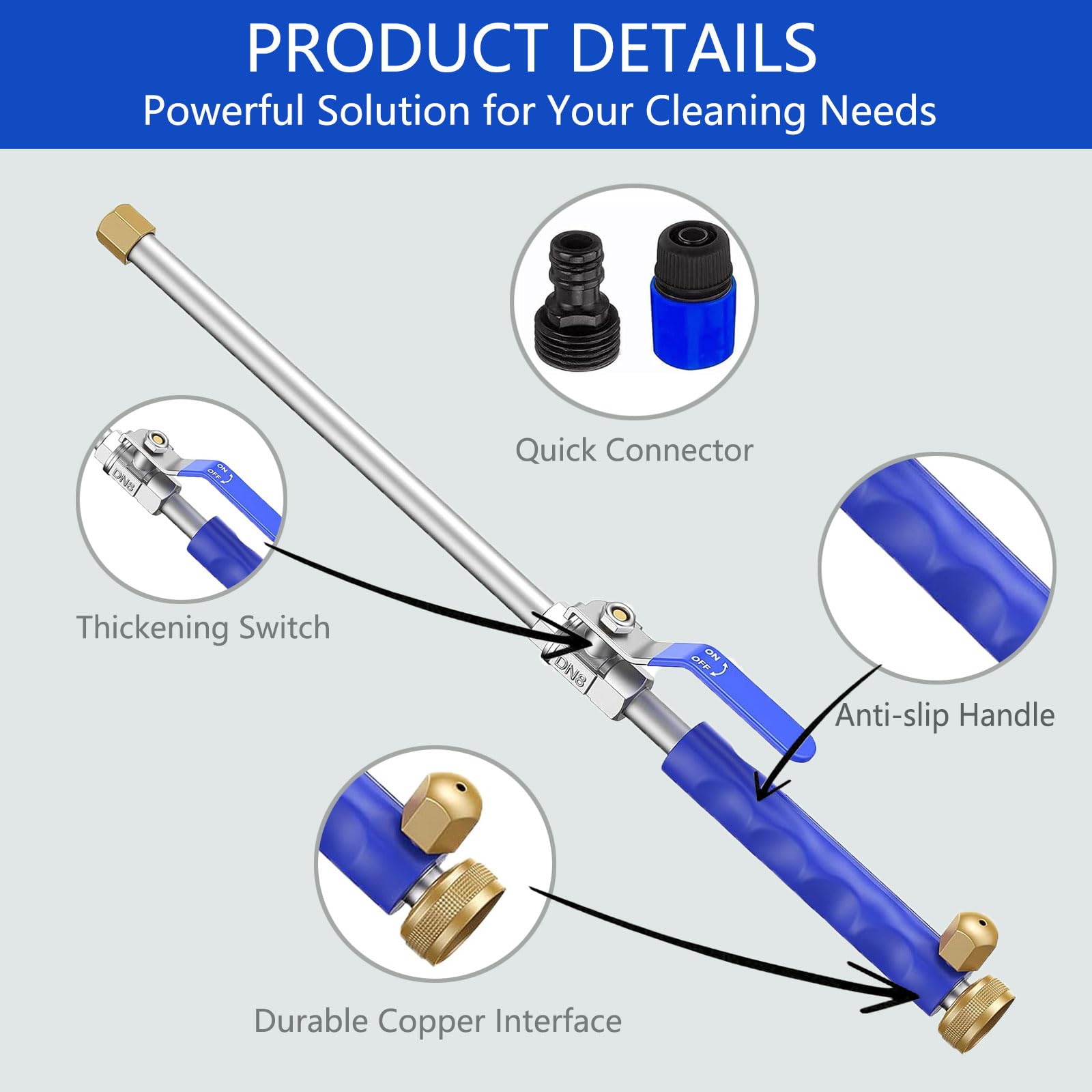 Léger et durable – Fabriqué en alliage d'aluminium robuste et en plastique pour une utilisation durable. Pistolet a eau Portable pour lavage de voiture 30BAR 700W 48V Conçu pour durer avec des matériaux haut de gamme : Fabriqué avec un tube en métal robuste, une interface en cuivre, un interrupteur renforcé et une poignée antidérapante. Pistolet à Eau Haute Pression Sans électricité Allège Aluminium Durable Nettoyeur Haute Pression Jetson - 2 Buses Jet Et Connexion Tuyau (Bleu) Nettoyeur Haute Pression 2-en-1 Buse Lavage Haute Pression Portable Haute pression, sans électricité – Fournit une forte pression d'eau sans alimentation électrique. Prise en main confortable – Poignée ergonomique en EVA pour un meilleur contrôle et un meilleur confort. Modes de pulvérisation à double jet : basculez entre le ventilateur et les buses à jet linéaire pour s'adapter à diverses tâches, du lavage doux de la voiture... Nettoyez voitures, terrasses, meubles de jardin et bien plus encore, rapidement et confortablement. Idéal pour les allées, les terrasses, les voitures, etc. Promo Nettoyeur Haute Pression Thermique 240 Bar Stanley chez Brico... Spécifications : Matériau : alliage d'aluminium + plastique Dimensions du produit : 37 × 16 cm Longueur du pistolet à eau : 46,5 cm/18,31 po Hauteur du connecteur bleu : 5,5 cm/2,17 po Diamètre de la buse métallique : 1,7 cm/0,67 po, hauteur : 1,5 cm / 0,59 po Hauteur du connecteur noir : 3,5 cm / 1,38 po Compatible avec : tuyau d'arrosage standard de 1,27 cm Contenu : 1 ensemble de nettoyeur haute pression Utilisation polyvalente – Idéal pour le lavage de voitures, de terrasses, de fenêtres, de vélos et de surfaces extérieures. Compatible avec la plupart des tuyaux d'arrosage, ce nettoyeur haute pression est idéal pour le nettoyage extérieur. 3 modes de pulvérisation – Réglages réglables pour le rinçage, le nettoyage et une pulvérisation puissante. Compact et polyvalent : Léger et facile à transporter, ce nettoyeur haute pression vous accompagne partout.