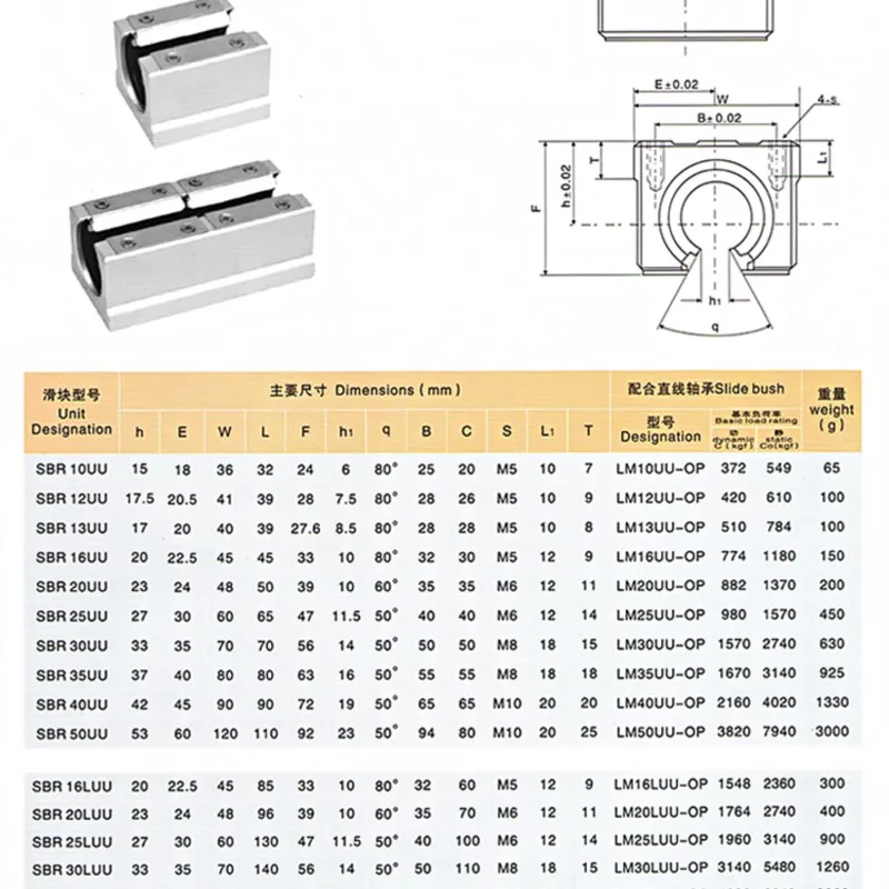Roulement à billes linéaire SCS10UU 10mm Le paquet comprend: 2pcs Sbrxxluu Guide Linéaire CNC SBR12LUU YWBL-WH SBR20LUU Alliage D'aluminium Roulement Linéaire Ouvert Bloc Guide Linéaire Ouvert Blocs de roulement linéaires SBR de haute précision conçus pour les applications CNC, assurant un mouvement fluide et fiable. Fabriqué en alliage d'aluminium haute résistance pour une durabilité accrue et une résistance à l'érosion, parfait pour une utilisation à long terme Lot de 2 blocs de roulements à billes linéaires SBR10LUU SBR12LUU SBR16LUU SBR20LUU, type ouvert, for routeur CNC, guide linéaire SBR Série SBR, robuste et...