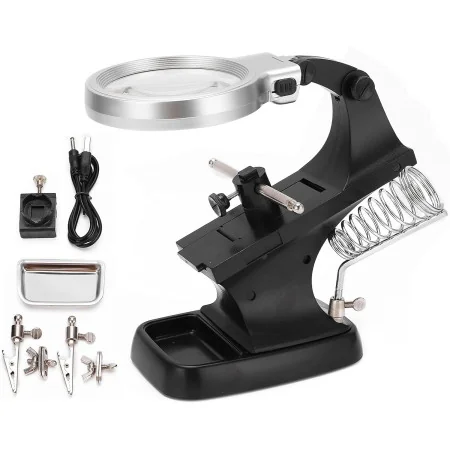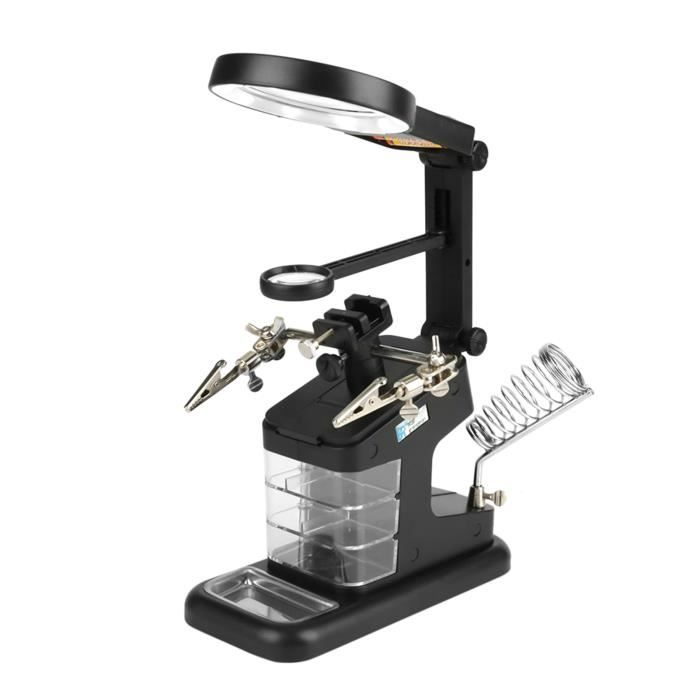 Loupe à Souder Avec Lumière LED 5X Allumé Loupe Support De Lumière Loupe Lampe Beauté Loupe Prise Ue-FOE Loupe Grossissement Réglable Loupe de soudage au fer à souder 2 LED 3X 4.5X 25X - AIHONTAI - couleur Blanc LUNETTE LOUPE,--Loupe de soudage avec lumières LED 3.5X 12X Loupe de soudage Lupas Station de... Excellent outil auxiliaire de soudage - Ce produit est une station de soudage de fer à souder électrique multifonctionnelle avec une loupe, une lumière LED, une pince auxiliaire et une conception de placement d'outil de fer à souder, un travail de soudage de fer à souder auxiliaire multidirectionnel. Pratique à utiliser - Le produit est équipé d'un emplacement pour les outils de fer à souder, ce qui peut rendre l'opération de soudage du fer à souder plus fluide et plus pratique. Conception réglable - La conception indépendante de la lampe à 5 LED rend la lampe à LED et la loupe relativement indépendantes et a une conception flexible en col de cygne. Caractéristiques : Le clip auxiliaire a une conception en dents de crocodile pour fixer davantage l'objet d'observation sans desserrer ni endommager l'objet. La lumière peut être ajustée à votre angle, hauteur et position les plus confortables, et peut être utilisée comme lampe de table séparée. Il y a une loupe principale d'un diamètre de 90 mm avec un grossissement de 2,5x, et deux petites loupes détachables et remplaçables 7,5x et 10x d'un diamètre de 34 mm sont fixées, vous permettant d'observer plus attentivement lors du soudage. Vous n'avez pas à vous soucier de sa stabilité, travaillez simplement l'esprit tranquille. Matériel]Utilisation d'un matériau ABS de haute qualité, d'un métal et d'une lentille en verre à haute transmittance, longue durée de vie. Loupe portative à grossissement 10x avec pinces crocodiles réglables.[Taille du produit] 200 x 100 x 175 mm, grand diamètre de l'objectif = 90 mm = 3,5