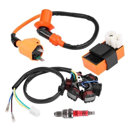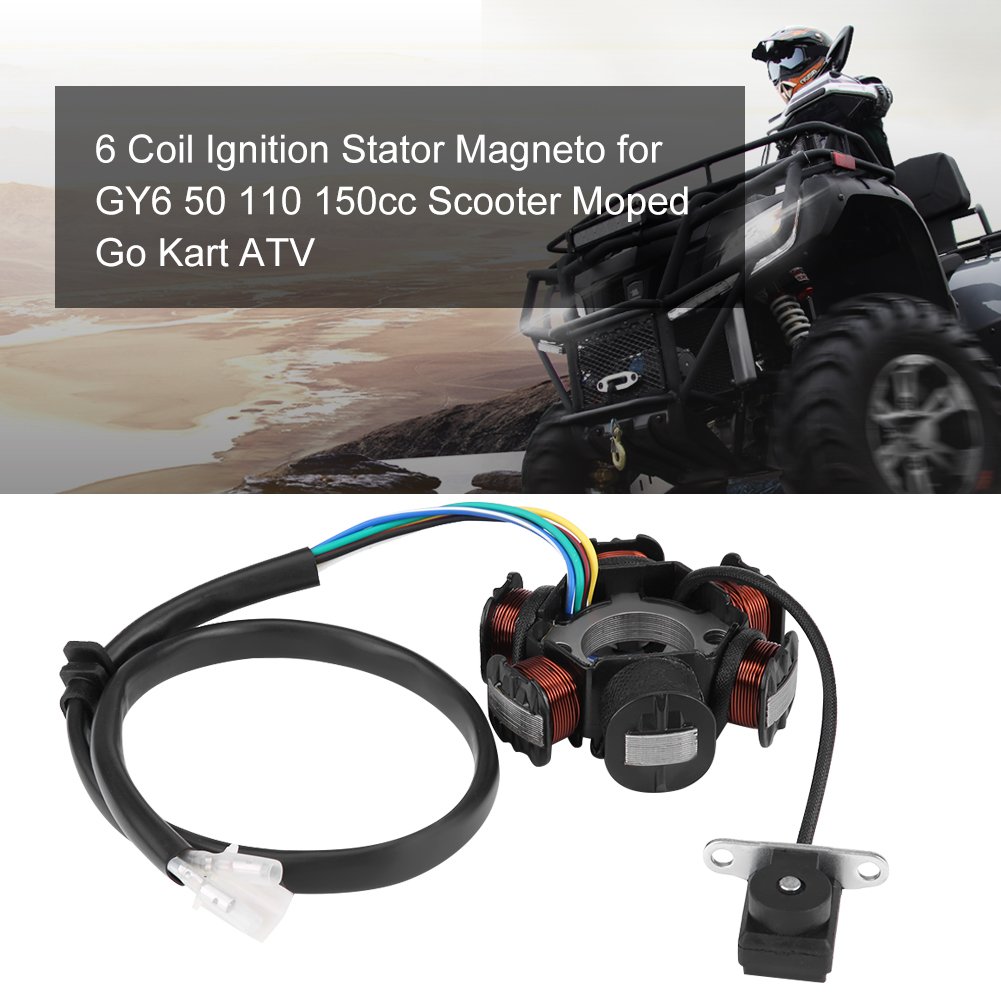 KIMISS stator hytrack 50 gy6 6 bobina allumage [Performances d'allumage améliorées] Le stator de bobine magnéto améliore considérablement les performances d'allumage pour une fiabilité optimale. [Performance] Conçu pour remplacer ou améliorer le stator de bobine d'origine du véhicule, garantissant un allumage cohérent et efficace Bobine Allumage Scooter 6 Bobines 6 Bobines D'Allumage Stator Magneto Pour GY6 50 110 150cc Stator Démarreur Production énergie Fabrication professionnelle ----- L'ensemble de bobine de démarreur de VTT pour moto tout-terrain est fabriqué par des professionnels, une fabrication sophistiquée, une excellente qualité, une grande fiabilité, digne de votre confiance et votre meilleur choix,Si vous avez des questions ou de l'insatisfaction avec nos produits, vous pouvez à tout moment. 【Application】----- Le magnéto stator à 6 bobines Fonctionne pour le démarreur de moteur et la production d'énergie pour la batterie, adaptée pour GY6 50 110 Scooter Moped Go Kart ATV. Mothinessto Magnéto d'allumage Magnéto de stator d'allumage à 6 bobines... Matériaux de haute qualité ----- Le stator à 6 bobines adopte des matériaux de métal, de plastique et de fil de cuivre de haute qualité pour assurer une dureté élevée, une résistance à la rouille, une non-déformation et une durabilité. 【Alimentation】-----Le stator magnéto convient au démarrage du moteur et à la production d'énergie par batterie, ce qui peut fournir de l'énergie pour le démarrage de la moto et le fonctionnement du circuit, vous permettant de rouler en douceur plus fluide. 【Fabrication professionnelle】----- L'ensemble de bobine de démarreur de VTT pour moto tout-terrain est fabriqué par des professionnels, une fabrication sophistiquée, une excellente qualité, une grande fiabilité, digne de votre confiance et votre meilleur choix,Si vous avez des questions ou de l'insatisfaction avec nos produits, vous pouvez nous contacter à tout moment. 【Réparation rapide】-----Cela peut vous aider à réparer rapidement le problème de stator de magnéto de moto.