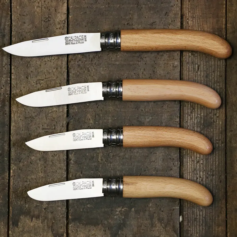 Couteau pliant André Verdier girafe, série limitée animaux sauvage Lame en acier inoxydable , Embout bloquant , hêtre naturel , Fabrication Française Fabrication Française Qualité Couteau L'Alpage 7,5 Inox Hêtre André Verdier Couteau De Poche Découvrez l'Andre Verdier l'Alpage, le couteau de poche français par excellence. Alliant la robustesse de sa lame en acier inox trempé à l'élégance d'un manche en bois de hêtre verni, cet artisanat issu de Celles-sur-Durolle promet une expérience inégalée. Une virole tournante de blocage de lame garantie une sécurité parfaite. L'authenticité française à portée de main Couteau enfant L'Alpage gravure oiseau André Verdier - coutellerie...