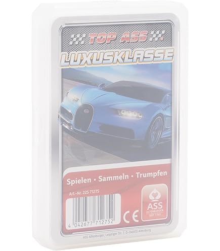 ANCIENNES CARTES A JOUER de la marque ASS ALTENBURG THÜRINGEN Nr 9R... Contenu : 32 cartesFormat des cartes : 59 x 91 mm Emballage : étui plastiqueNombre de joueurs : 2–4 Age : 6 + Durée de la partie : 10–15 min Nombre de joueurs : A partir de 2 Jeu Famille 2 à 4 Joueurs ASS Altenburger Cartes à Jouer Avec Visages Français Jeu Rapide 10-15 Minutes Si trumpfen avec des chats les plus classique ou comme Quartet Jeu – Jeu de plaisir inclus. ASS Altenburger 22571993 TOP Jeu de cartes ASS Cat - description TOP ASS chats: Qu'il s'agisse de chats à poil court ou à poil long, de chats domestiques ou de chats garçons-manqués, les chats sont parmi les animaux de compagnie les plus populaires de tous. De belles photos et des faits et chiffres sur l'âge, la taille de la portée, le prix et le poids forment le Quatuor ASS... Top ass chats :Si à poils courts ou longs cheveux, votre petit félin ou le gibier pêche – Chat sont parmi les plus populaires des animaux domestiques. Cartes De Jeu Salon Karte Altenburger Magiare 148 Ass Vintage Cartes à