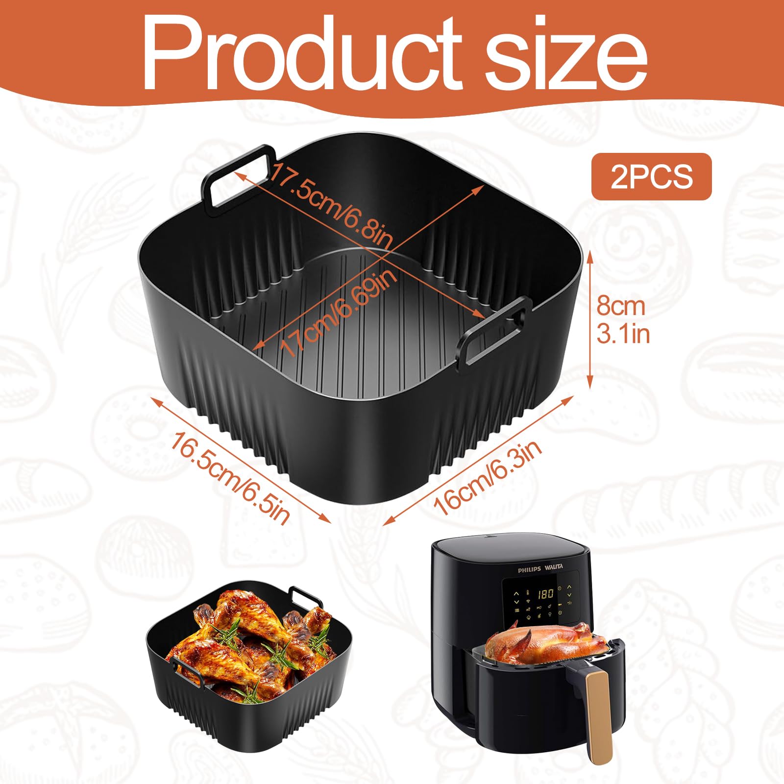 100% silicone alimentaire - Nos moules en silicone Airfryer pour Philips sont fabriqués à 100 % en silicone de qualité alimentaire de haute qualité. Caractéristiques: Matériau : silicone de qualité alimentaire Couleur: Noir Taille : 16,5 x 16 x 8 cm/6,5 x 6,3 x 3,1 pouces Modèles compatibles : pour Philips HD9252, HD9200 et HD9255 Contenu de la livraison : 2 x Moule Air Fryer pour Philips Que vous cuisiniez, grilliez ou rôtissiez, ces moules en silicone tiendront le coup. La résistance à la chaleur atteint jusqu'à 400 °F (200 °C), vous pouvez donc être sûr que vos aliments sont préparés dans un environnement sain et de haute qualité. Avec une résistance à la chaleur allant jusqu'à 400 °F (200 °C), cet insert en silicone pour friteuse à air convient à une variété d'installations de cuisson telles que les friteuses à air, les fours et les micro-ondes. Matériau en silicone de qualité alimentaire de haute qualité : ce moule en silicone pour friteuse à air est fabriqué à 100 % en silicone de qualité alimentaire de haute qualité. Moule Silicone Air Fryer Alyvisun Oule Silicone Air Fryer Accessoire, 2 Pièces Panier Oule Moule Pour Air Fryer Philips Airfryer HD9252 Zubehör | Preisvergleich bei Que vous prépariez des frites, du poulet, des fruits de mer, des légumes ou des pâtisseries, ces moules en silicone sont l'accompagnement parfait de tout type de cuisine. Il est sans BPA, imperméable, résistant à l'huile et possède un excellent revêtement antiadhésif. Cet accessoire de friteuse à air robuste et réutilisable protège également le revêtement antiadhésif de votre friteuse à air et prolonge sa durée de vie. Aucun stress de nettoyage, revêtement du panier protégé : la forme en silicone pour Philips Airfryer retient complètement les résidus alimentaires à l'intérieur, évite les salissures et les résidus incrustés. Après la cuisson, il suffit de retirer le moule et de le rincer, pas besoin de frotter Cela permet d'utiliser l'espace de cuisson de manière optimale et de préparer plus de nourriture à la fois. Des frites au poulet en passant par les fruits de mer, les légumes et les pâtisseries, élargissez vos options culinaires. Réutilisable et extrêmement facile à nettoyer : après utilisation, vous pouvez simplement les tremper dans de l'eau chaude et les retourner facilement lors du lavage, ou profiter de l'option de les nettoyer au lave-vaisselle. JOPHEK oule Silicone Air Fryer Set, 5 Pack Accessoires pour Friteuses... Applications polyvalentes et conception de poignée confortable : en plus d'être parfait pour la friture dans la friteuse à air, notre moule en silicone pour friteuse à air est également idéal pour la cuisson, le grillage et le rôtissage de divers aliments. La conception confortable de la poignée des deux côtés du moule en silicone pour friteuse à air vous aide à manipuler le moule en toute sécurité, évite les brûlures et facilite le retrait de la friteuse à air. Ajustement optimal pour Philips Airfryer - Spécialement conçus pour les modèles Philips Airfryer HD9252, HD9200 et HD9255, ces moules en silicone offrent un ajustement parfaitement coordonné.