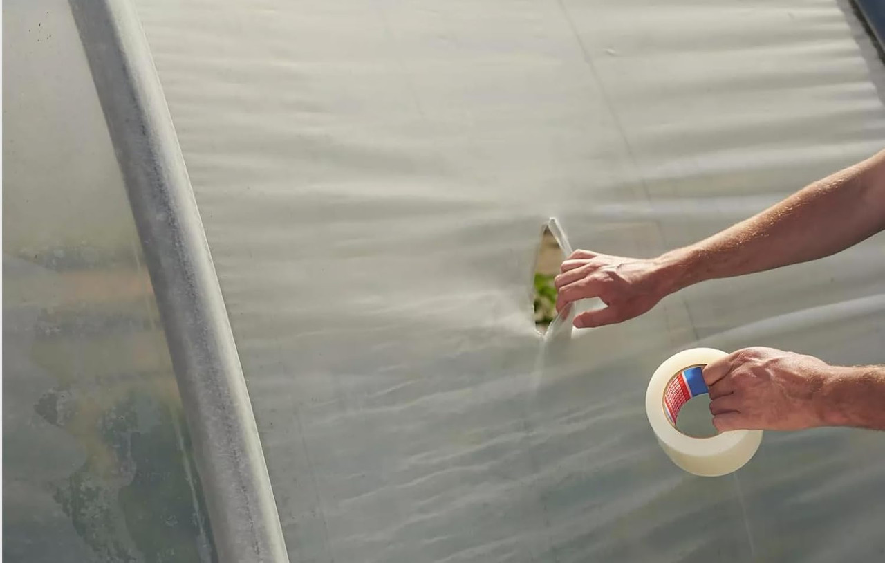 Ruban adhésif PVC vinyl transparent 50 mm x 33 m pour réparation de serres Protection Toile Plastique Dpm Tapes - Tesa 4615 Professional – Duct Tape, Ruban En Tissu Américain Pour Réparations, Fixation, Emballage, Marquage Et Scellement - Intérieur Et Extérieur - 50 M X 50 Mm (Gris Ruban Réparation Parasol Tente Adhésif de Réparation pour Film et Bâches 10 cm | Culture Serres Facile à utiliser : film en plastique pour serre pour réparer les déchirures, nettoyer d'abord la partie cassée, bien sécher la surface, appliquer le ruban et enfin exercer une forte pression. Ruban adhésif en polyéthylène avec adhésif acrylique modifié, spécialement conçu pour la réparation et le montage de serres. Il offre un excellent comportement... Évitez que les légumes ou les plantes soient affectés par le mauvais temps, gardez l'équilibre de la température dans la serre, aidant les plantes, les légumes ou les fruits à pousser sainement. Large application : réparation permanente des déchirures et des déchirures dans les couvertures et les bâches de serres, tunnels hauts et tunnel en polyester, réparation de dommages aux serres de légumes, films pour fleurs et sacs en plastique, tentes de camping, tentes de soleil, parasols