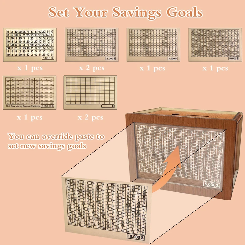 Apprenez à vos enfants la valeur de l'épargne et regardez leurs économies croître avec nos tirelires. Tirelire Numérique Réutilisable Amebleak Tirelire En Bois, Numérique Tirelire, Tirelire Enfant Tirelire Bois Compteur Numérique Amebleak Tirelire en Bois, Tirelire, Tirelire en Bois pour Enfants, Tirelire Réutilisable avec Objectif d'Épargne et cochez les chiffres pour aider les enfants à commencer à épargner Caractéristiques : Matériau en bois : la tirelire de comptoir est fabriquée en bois de haute qualité, qui n'est pas facile à casser et sûr à utiliser. Tirelire - Tirelire - Rétro - Anker - Mer - Motifs - Marine - Tirelires... Épargner est plus amusant avec la tirelire numérique avec compteur. 【Facile à installer】Pour assurer un transport en toute sécurité, tirelire est démonté à la sortie de l'usine, mais peut être installé en quelques minutes en épissant simplement les trous appropriés, puis en l'utilisant. Excellent choix de cadeaux : ce paquet comprend 1 x tirelire en bois avec objectif d'épargne, 1 x stylo à encre soluble dans l'eau et 1 x manuel de montage. La tirelire avec compteur est un cadeau unique et significatif pour les enfants et les adultes, et encourage de bonnes habitudes d'épargne. Spécifications du produit : Matériau : bois... 【Boîte d'économie de numéro de contrôle】 La tirelire en bois est fabriquée à partir de bois de haute qualité respectueux de l'environnement, qui n'est pas facile à endommager et peut être réutilisé. Facile à utiliser : réutilisable et facile à assembler et à démonter. 【Réutilisable】 Notre boîte d'économie d'argent est réutilisable, si vous utilisez un stylo soluble dans l'eau pour marquer les chiffres, lorsque votre objectif est atteint, vous pouvez facilement supprimer les marques et les réutiliser (pour ouvrir, utilisez un couteau ou un tournevis pour couper les chiffres ouvrez soigneusement la page avec les chiffres). Tirelire en Bois, Numérique Tirelire, Tirelire sans Ouverture, Tirelire Enfant a Cultivez l'habitude d'épargner : au fur et à mesure que les enfants l'utilisent, ils en prendront progressivement conscience Économiser de l'argent pour les aider à développer une bonne habitude d'épargne. C'est une excellente idée de cadeau pour les anniversaires, les vacances ou toute autre occasion spéciale.