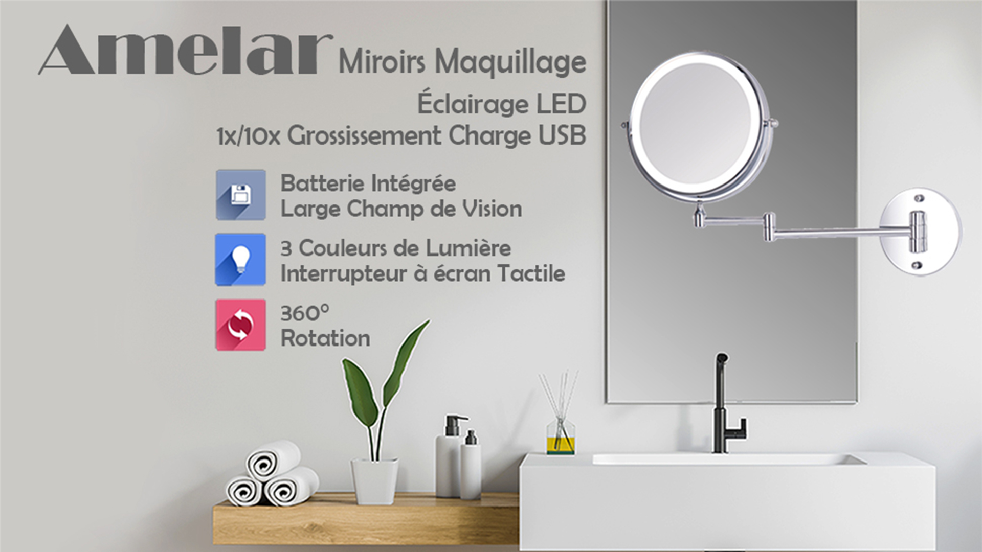 attribut Un nouveau sens mélange miroir maquillage doré randonnée Leur intervall Sa teinte chaude est idéale pour un maquillage en tête-à-tête,Miroir De Maquillage Mural De tandis que sa lumière froide révèle les imperfections cutanées les plus microscopiques. Miroir Lumière Réglable Blanc Chaud Froid Miroir Grossissant 20x Miroir Maquillage LED Amelar - Mural, Pivotant, Lumière Réglable Et Grossissant 20X Miroir Pivotant 360 Miroir 360 Miroir De Maquillage Mural De offre une lumière blanche naturelle pour un dessin précis des sourcils. Ce miroir est un game-changer pour ton maquillage. Avec un côté normal et un côté grossissant x20 pour voir tous les détails. LED avec 3 couleurs de lumière... Miroir pivotant à 360° et support pliable : ① Le miroir de maquillage mural peut être tourné à 360 degrés. Vous pouvez régler le miroir à n'importe quel angle et position dont vous avez besoin. ② Le miroir est conçu avec un bras d'extension, qui peut être facilement étendu et plié, ce qui est très approprié pour être placé... Miroir de salle de bain rechargeable : Ce Miroir De Maquillage Mural De la luminosité par simple pression, dispose d'une capacité de 2000 mAh et d'un chargeur USB. Installation facile : Pour ce Miroir Grossissant Mural vous suffit d'utiliser le gabarit de perçage fourni pour percer deux trous et le fixer au mur. Miroir Grossissant Mural Plus besoin de remplacer la batterie fréquemment ni de craindre qu'elle ne s'abîme. Système d'éclairage tricolore réglable en continu : CeMiroir De Maquillage Mural De offre un contrôle précis, de 0 % de douceur à la bougie à 100 % de clarté clinique. Matériau et dimensions : Miroir Grossissant Lumineux verres en miroir argenté. Miroir Grossissant Lumineux, Miroir De Maquillage Mural De, Miroir Grossissant Mural, Miroir Lumineux Salle De Bain 360° Pivotant Et Extensible, Led Rechargeable Pour Salle De Bain, Bureau(Blanc) Description du produit : Matériau et dimensions : Miroir Grossissant Lumineux verres en miroir argenté.