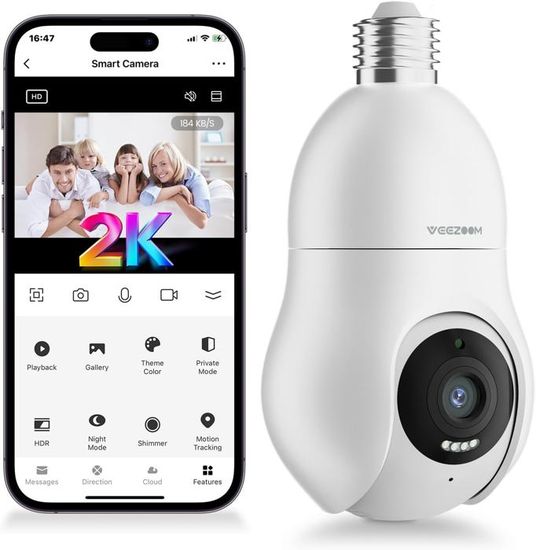 [𝗖𝗼𝗺𝗽𝗮𝘁𝗶𝗯𝗹𝗲 𝗮𝘃𝗲𝗰 𝗔𝗹𝗲𝘅𝗮, 𝗚𝗼𝗼𝗴𝗹𝗲 𝗛𝗼𝗺𝗲 𝗲𝘁 𝗗𝗼𝘂𝗶𝗹𝗹𝗲 𝗘𝟮𝟳 𝗦𝘁𝗮𝗻𝗱𝗮𝗿𝗱] Contrôlez votre camera interieur wifi sans fil via les assistants vocaux Alexa & Google Assistant pour allumer, images par simple commande. Support Professionnel 24h/24 Système vocal bidirectionnel intégré:que ce soit pour apaiser votre animal, discuter avec vos visiteurs ou communiquer à distance, tout est facilité. Alexa & Google Assistant Ampoule Caméra WiFi 2K (3MP) Ampoule Camera Interieur/Exterieure WiFi, 2.4/5GHz Caméras De Ampoule Caméra Surveillance WiFi Correction d'image DIY Obstruction vitrée : Évitez tout verre/transparent devant l'objectif - risque d'images floues avec la veilleuse IR nocturne. Parfaite pour remplacer une ampoule existante sans modifier votre installation ! [𝗩𝘂𝗲 𝗣𝗮𝗻𝗼𝗿𝗮𝗺𝗶𝗾𝘂𝗲 𝟯𝟲𝟬°𝗦𝗮𝗻𝘀 𝗔𝗻𝗴𝗹𝗲 𝗠𝗼𝗿𝘁] Couvrez chaque coin de votre espace avec une rotation horizontale à 355° et une inclinaison verticale à 90°. 5MP Caméra Surveillance CTRONICS sans fil Intérieur Extérieure WiFi 2.4 Assistance technique à distance et conseils experts pour une expérience fluide, avec un support après-vente réactif et personnalisé. Consignes d'installation Importantes Conception d'installation Simple - Tournez et utilisez Design d'installation révolutionnaire et ultra-simple : remplacez directement votre ampoule existante, serrez-la et c'est prêt ! Discutez en direct via le microphone et haut-parleur intégrés pour dissuader les intrus. Parfaite pour les foyers connectés et les environnements avec plusieurs appareils WiFi ! AOSU 2K Caéra Surveillance Extérieure Solaire sans Fil, Kit 2 Caéras... SYYNELEC Caéra Surveillance Apoule Extérieure Étanche, Caéra WiFi... Appairage ultra-rapide Bluetooth Connexion Réseau Plus Rapide et Stable pour Vous Double bande pris en charge : Compatible simultanément avec les bandes de fréquence 2,4 GHz et 5 GHz, sélection automatique du meilleur canal de signal. Idéale pour surveiller votre maison, bureau ou jardin avec une précision inégalée., [𝗖𝗼𝗻𝗻𝗲𝗰𝘁𝗶𝘃𝗶𝘁𝗲́ 𝘀𝗮𝗻𝘀 𝗳𝗶𝗹 𝗪𝗶𝗙𝗶 𝗗𝗼𝘂𝗯𝗹𝗲 𝗙𝗿𝗲́𝗾𝘂𝗲𝗻𝗰𝗲 𝟮. [𝗤𝘂𝗮𝗹𝗶𝘁𝗲́ 𝗱'𝗶𝗺𝗮𝗴𝗲 𝟮𝗞 𝟯𝗠𝗣 𝗛𝗗 𝗮𝘃𝗲𝗰 𝗩𝗶𝘀𝗶𝗼𝗻 𝗡𝗼𝗰𝘁𝘂𝗿𝗻𝗲 𝗖𝗼𝘂𝗹𝗲𝘂𝗿] Profitez d'une résolution claire (2650*1600p) pour capturer chaque détail, jour et nuit. Plus de coupures, plus de latence. Compatible avec la douille E27 standard(100-240V), elle s'installe en quelques minutes sans travaux électriques. Alimentation : Maintenez l'interrupteur allumé en permanence (coupure = déconnexion).