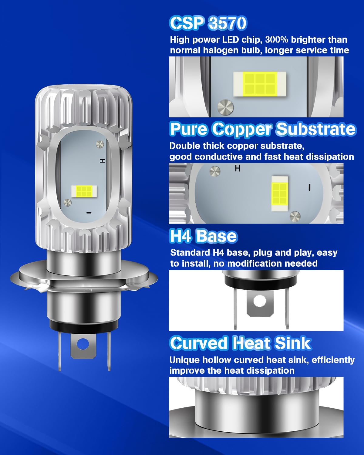 La coque métallique et la plaque métallique accélèrent le transfert de chaleur. Pilote intelligent de contrôle de la température, contrôle de la température en temps réel Très silencieux en fonctionnement. Conception d'installation sans fil , PRÊT À L'EMPLOI Keiurot Ampoule LED H4 Moto Ampoules de phares H4 voiture Moto HS1 HB2 9003 Ampo Corps de lampe intégré, conduction globale de la chaleur. >50000HRS de durée de vie Luminosité 300% plus élevée : NHHEO H4 9003 HB2 HS1 H19 ampoule LED pour moto utilisant la puissante puce LED 24SMD-3570, luminosité plus élevée... Facile à installer: Conception 1:1 identique aux ampoules halogènes de série., Plug N Play. NHHEO Ampoule de phare à LED H4 Pas de bruit: Conception sans ventilateur, aucun bruit n'est généré pendant le fonctionnement. Ampoule Hs1 Ampoules De Phares LED H4 9003 HS1, Ampoule De Remplacement Améliorée 6000K Blanche Pour Voiture ATV UTV Moto H4 Feux De Faisceau Hi/Lo Sans Ventilateur Ampoule 9003 Hs1 Led Philips Cityvision oto Hs1, Apoule De Phare De oto... Vous bénéficiez d'une expérience de conduite silencieuse et confortable