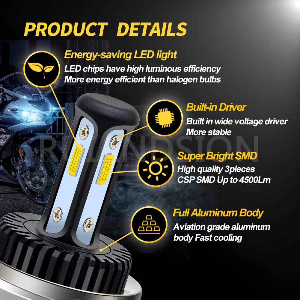 【Conception à large tension】Prend en charge AC 6 V-24 V y compris 6 V 12 V 24 V, ce qui le rend adapté à diverses motos et voitures. Contenu de l'emballage : 2 ampoules LED P45T. Phare LED Pour Scooter VTT Ruiandsion Lot De 2 Ampoules LED P45T R2 H5 Pour Moto - AC 6 Ampoule Led P45t 6-24v Conception à large tension]Prend en charge AC 6 V-24 V y compris 6 V 12 V 24 V, ce qui le rend adapté à diverses motos et voitures. Pas besoin de vous soucier de l'incompatibilité de tension, assurant une installation sans tracas Garantie : garantie Ruiandsion pendant 1 an à compter de la date d'achat. Plug and Play n'est pas sensible à la polarité. Durée de vie : jusqu'à 50 000 heures. Au cours de cette année, nous allons garantir la qualité du produit, afin que vous puissiez acheter sans soucis. Type de garantie : échange ou remplacement Tension : AC6V-24V (6V 12V 24V) Non-polarité. 【Super lumineux】Avec une sortie de luminosité élevée allant jusqu'à 5000 lumens, la technologie avancée de puce CSP 2SMD offre un éclairage clair et brillant, améliorant la sécurité pour la conduite de nuit et la conduite. Dimensions (L x l) : 80 x 47 mm. Type : lot de 2, P45T CSP 2-SMD, couleur : 6000 K blanc, tension : AC 6-24 V sans polarité, puissance : 15 W, lumens Type : lot de 2, P45T CSP 2-SMD, couleur : blanc 6000 K, tension : AC6–24 V non polarité, puissance : 15 W, lumens : 5000/2500 lm. 【Garantie】Ruiandison vous offre un service de garantie d'un an. Faisceau : faisceau haut/bas., Couleur : blanc., Lumen : 5000/2500 lm. Ruiandsion Ampoule LED R2 P45T H5 Pour Phare De Moto AC/DC 12-24 V