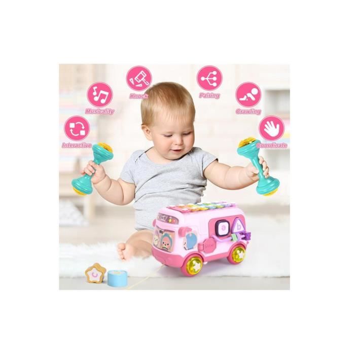 En tapant sur les touches, vous entendrez différentes notes claires et agréables. Les portes du bus peuvent être ouvertes, ce qui permet à votre bébé de sortir et de ranger facilement les blocs. Les bébés peuvent marcher en tenant la corde. Jouet xylophone: le xylophone comporte sept touches de différentes couleurs. Jouets Musicaux Pour Bébé De 12 à 18 Mois Pour Filles De 1 An Jouets Sensoriels Avec Bus Xylophone Trieur De Formes Jouets A Tirer Pour 12 18 Mois Jouets Educatifs Precoces Cadeau Danniversaire Votre bébé peut insérer le bloc de la bonne forme dans le trou, ce qui favorise la reconnaissance des formes. Ce bus scolaire musical sera un jouet surprenant pour les filles de 1 à 2 ans. Jouet musical pour bébé de 6 à 12 mois de 12 à 18 mois - Jouet musical pour apprendre à ramper à quatre pattes - Cadeau pour bébé garçon et fille ... Ou livraison... Qualité fiable et excellent cadeau: ce jouet pour bébé est un excellent jouet musical qui aide l'enfant à apprendre et à jouer de la musique, et stimule son talent musical. Les bébés apprennent davantage en jouant avec ce jouet pour bébé de 12 à 18 mois., Dimensions : 20 * 15 * 14 cm., . Jouet à tirer: une corde est fixée sous le bus. Jeux Sensoriel Bebe Jouet Enfant 1 An, Bus Musicaux Sensoriel Avec Xylophone Jouet Sensoriel Avec Corde à Tirer Jouet Bebe 3 6 9 12 Mois,Jouet Enfant 1 2 3 ans Jouets Musicaux pour... Cela les incite à marcher, ce qui contribue à développer leur équilibre.