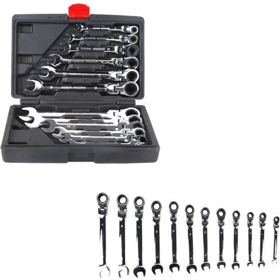 Jeu de clé à cliquet mixtes 12 pièces - Les Wiss - Métrique 8-19mm Clé Ouverte Jeu De Clés À Cliquet Clé Plate De 22 Mm Clé À Cliquet À... Clé Plate à Cliquet Anbull Lot De 9 Clés Mixtes à Tube Métrique (8-17 Mm), Jeu De Clés Cle Mixte Cliquet CONCEPTION À EXTRÉMITÉ OUVERTE AMÉLIORÉE: Nous proposons une nouvelle clé à cliquet à tête flexible à extrémité ouverte exclusive, facilitant l'accès et la rotation des boulons difficiles d'accès. Le jeu de clés Anbull est idéal pour les angles difficiles et les espaces restreints. Omabeta Clé à cliquet à extrémité ouverte et pointue Jeu de clés à... ROTATION FLEXIBLE: La tête flexible à 180 ° permet de basculer entre le sens horaire et antihoraire, facilitant ainsi l'application de la force. CLIQUET À 72 DENTS: Ce jeu de clés à tête flexible adopte un cliquet de précision à 72 dents, avec un mécanisme à cliquet ultra-fluide. Nous fournissons également une boîte à outils robuste pour un transport et un rangement faciles. EXCELLENTE QUALITÉ: Forgée en acier au chrome-vanadium de haute qualité, elle offre une dureté élevée, un couple élevé (test de couple jusqu'à 20 000 fois), une bonne résistance et une durée de vie prolongée.