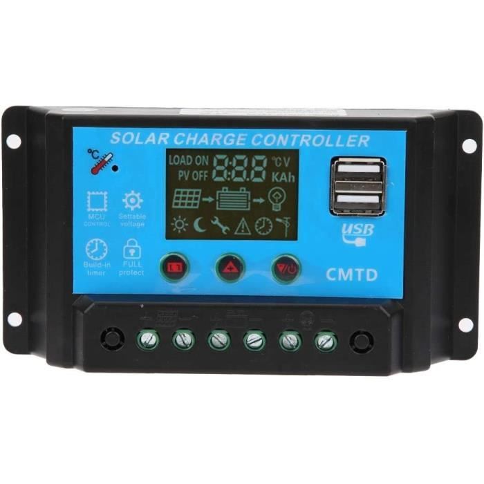 Fonction de stockage de travail: enregistrez la durée totale de fonctionnement du système, enregistrez les minuteries d'erreur pendant le temps de fonctionnement, enregistrez les heures de batterie complètement chargée. Contrôleur de charge solaire 12V - 24V 50A MPPT Régulateur de batterie de panneau solaire Double... Caractéristiques techniques complètes pour la configuration et la modification. Compensation de température précise, correction automatique de la tension de charge et de décharge, amélioration de la durée de vie de la batterie. Protection Surcharge Décharge Batterie Régulateur Solaire Ancien Contrôleur De Charge Solaire Régulateur De Batterie De Panneau Solaire Double Affichage LCD USB 12V/24V 30A50A MPPT(30A Panneau Solaire Camping Car Contrôleur Solaire Protection Surcharge Affichage LCD humanisé et fonctionnement à double bouton de l'interface homme-machine. Si vous rencontrez des problèmes d'utilisation, essayez d'ajuster la tension du flotteur à 13,7 V:Tout d'abord, vous devez appuyer sur le bouton de commande MCU pendant environ 3-4 secondes, puis il y aura une interface de gestion à l'écran. 【Caractéristiques】 Tension du système d'identification automatique, reconnaissance automatique 12/24V. Mode de charge intelligent MPPT en 3 étapes à haute efficacité. 【Facile à utiliser】 Les panneaux solaires, la batterie, les pôles positifs du contrôleur de charge solaire sont tous connectés ensemble, adoptant un MOSFET négatif en circuit de commande en série. 【Plus facile et plus sûr】 Protection fiable contre les surtensions, protection contre les courts-circuits, protection contre les surcharges, protection contre les surcharges, protection contre les décharges. Contrôle de la capacité de décharge. 100A 12V/24V/36V/48V AUTO MPPT Panneau solaire Régulateur Contrôleur de charge 60299... Enfin, vous devez appuyer à nouveau sur le bouton de commande MCU, ce qui permettra de sauvegarder les données d'enregistrement du contrôleur lorsque l'affichage ne scintille pas. Nous le résoudrons dès que possible. SUNYIMA 12V 24V 50A 30A régulateur de Charge solai... – Grandado