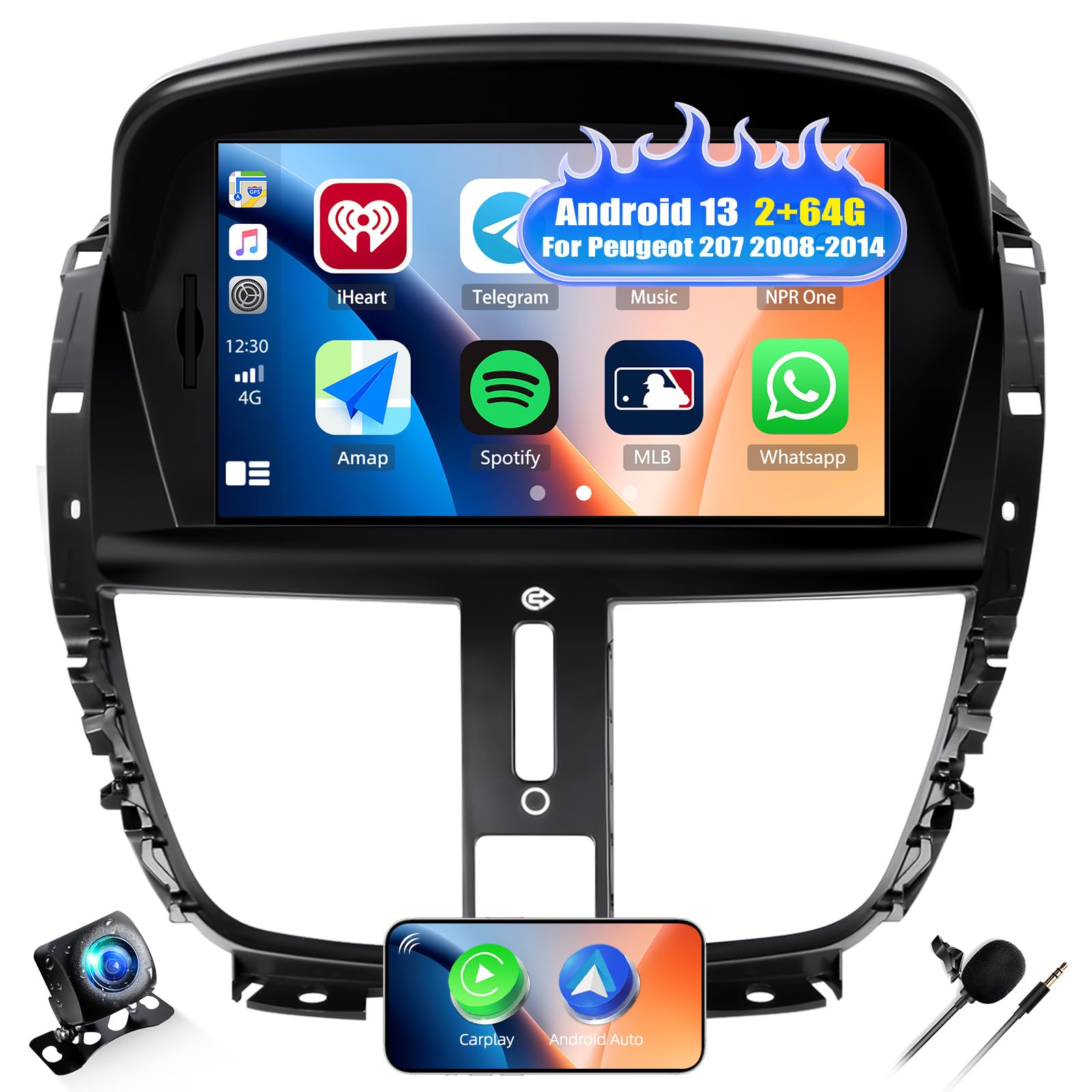 Les téléphones mobiles Android peuvent être contrôlés dans les deux sens, les iPhone peuvent être contrôlés une seule fois. GPS Caméra Recul Peugeot 207 2G+64G Sans Fil Apple Carplay Android 11 Autoradio 1 Din Avec Android Auto Gps Navi Iso Câble 10 Radio Double Din Peugeot 207 2008-2014 [Android 13 & 2G RAM + 64G ROM] Cet autoradio double din 7 » HD Touch screen est destiné à la Peugeot 207 2008-2014., Avec 2G de mémoire et 64G d'espace de stockage, 4 cœurs, WiFi, Bluetooth, Wireless Carplay & Android Auto, navigation GPS, fonction marche arrière, FM/RDS, EQ Sound, Mirror link, contrôle au volant. Cet autoradio 2 din avec écran tactile de 7 pouces vous offre un toucher sensible et une haute définition. L'autoradio double carplay prend en charge la liaison miroir via usb. Cet autoradio comprend une caméra de recul à 12 LED Permet la navigation en ligne/hors ligne, et les utilisateurs peuvent acheter la navigation ligne directement sur le Play Store. La fonction de marche arrière est compatible avec la technologie AHD&CVBS, avec une fonction de vision nocturne étanche, ce qui permet de faire face aux intempéries. Avec 2G de mémoire et 64G d'espace de stockage, 4 cœurs, WiFi, Bluetooth, Wireless Carplay & Android Auto, navigation GPS, fonction marche arrière, FM/RDS, EQ Sound, Mirror link, contrôle au volant. Cet autoradio 2 din avec écran tactile de 7 pouces vous... [Bluetooth/WiFi & GPS Navi ] Une fois connecté au WIFI, découvrez un tout nouveau monde où vous pouvez utiliser des cartes en ligne, regarder la télévision et des films en ligne, parcourir des vidéos YouTube, télécharger et installer des programmes, et bien plus encore ! [Wireless Carplay & Android auto] Connexion sans fil, déplacement gratuit, stable et fiable. Lorsque vous mettez la voiture en marche arrière, la radio allume automatiquement la caméra et affiche les images., (caméra incluse) Android Autoradio 2 Din Navigation GPS CAMECHO 7 Pouces HD Écran Tactile Radio de Voiture avec Prend en charge la commande vocale, ce qui rend l'utilisation plus pratique, réduit les interférences au volant et garantit la sécurité de la conduite. La liaison miroir permet de naviguer, de regarder des vidéos, d'écouter de la musique, etc.