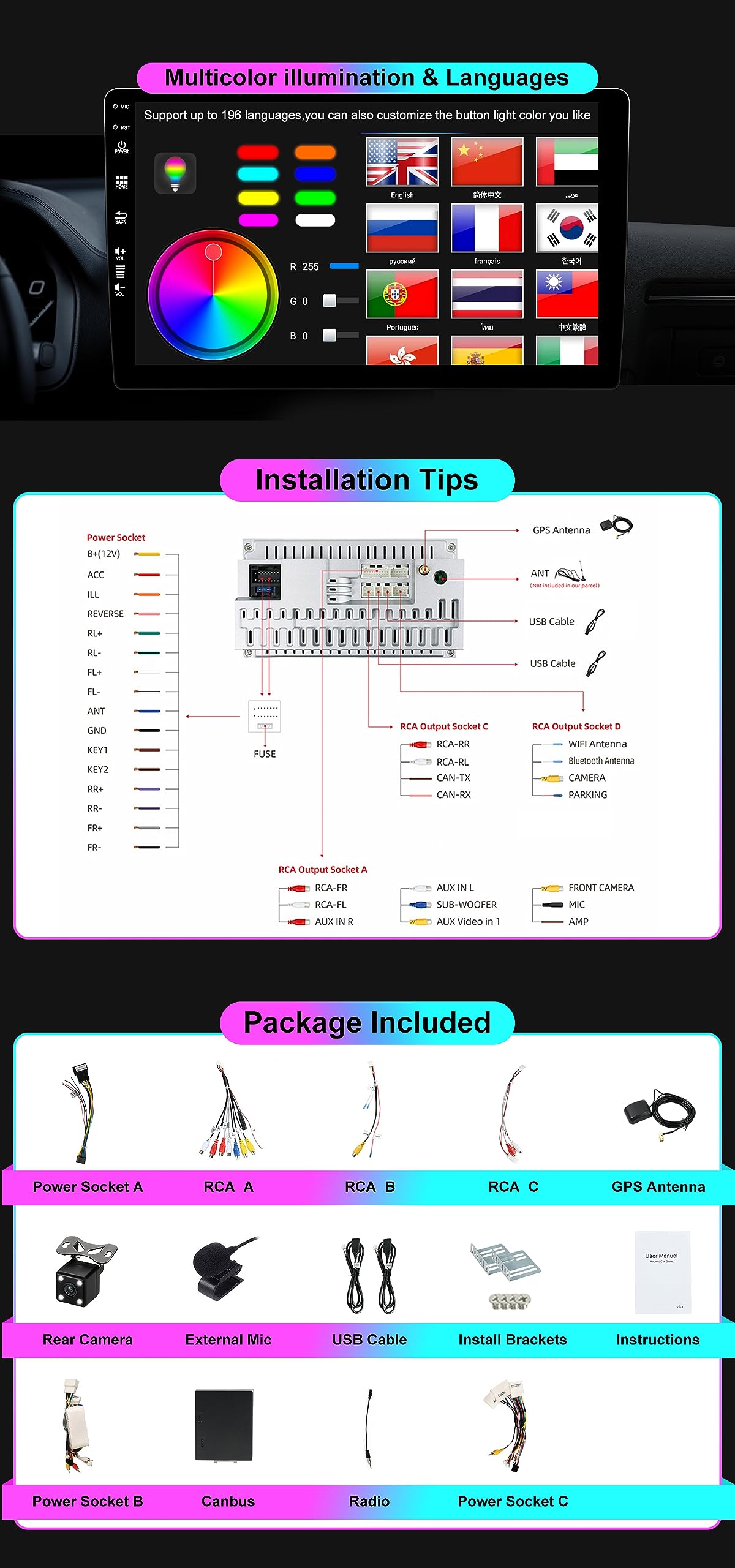 【WLAN double bande + commande au volant】Cet autoradio dispose d'un WLAN double bande intégré pour Internet, prenant en charge les réseaux WLAN 2,4 GHz et 5 GHz, vous permettant de surfer sur Internet plus rapidement. Démarrage plus rapide et exécution plus facile de diverses applications. Renault Clio 4 ZOE 2012-2019 X7 MAX 13.1 2K AI Voice Wireless CarPlay – Autoradio-multimedia Boutons LED Choisissez les couleurs des boutons LED que vous aimez Radio Bonne réception radio Tuner AM/FM intégré Prise en charge de la radio RDS Prise en charge de la fonction DAB+ (en option:B0DZ698F83), profitez de plus de stations Prend en charge le contrôle du volant, vous pouvez facilement régler le volume, répondre aux appels et changer de chanson pendant la conduite, ce qui peut garantir votre sécurité de conduite écran Tactile 10.1 Pouces CarPlay Sans Fil YUNTX Android 14 Radio Avec Navigation Pour Renault Clio 4 ZOE (2013-2019): [Intégré CarPlay/Android Auto/GPS] -IPS 10.1" 2.5D Écran Tactile-DAB/Bluetooth 5.0/WiFi/2 Din/Commande Au Volant/USB/WiFi/4G Radio GPS 6Go RAM 128Go L'amplificateur DSP intégré avec sélections d'égaliseur 64 bandes apporte l'effet sonore parfait à votre voiture Prend en charge 2 clés USB pour un stockage étendu. 【Modèles d'application automatique】Cet autoradio comprend un téléphone. Commande au volant Appuyez sur les boutons du volant pour répondre aux appels, écouter de la musique ou régler le volume. Écran capacitif avec résolution 1280*720 Données système : Système d'exploitation : Android 14 Mémoire : 6 Go de RAM + 128 Go de ROM Octa Core Écran tactile : écran numérique IPS de 10., 1 pouces avec une résolution de 1280 * 720 Sortie audio : 4 * 50 W CarPlay sans fil intégré, Android Auto, Mirror Link Vous pouvez accéder à des informations telles que les e-mails, la navigation sur carte, la musique et la vidéo, ainsi qu'à la commande vocale La fonction Mirror Link sans fil peut diffuser le contenu du téléphone sur la radio DSP intégré Égaliseur 64 bandes, réglage indépendant des haut-parleurs avant et arrière.
