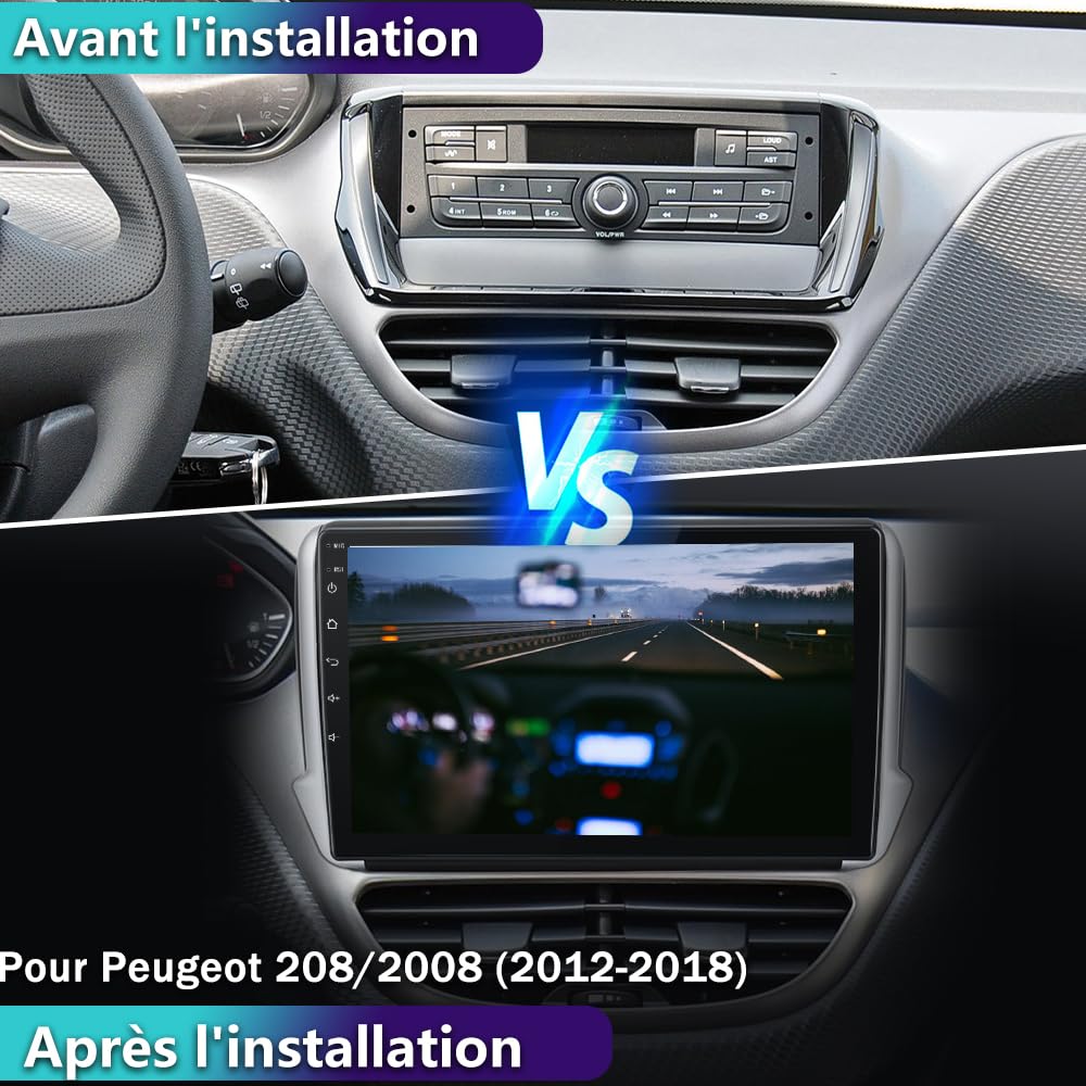 GPS Intégré Autoradio Android 15, 6G+128G 8 Cores GOHHDL Car Radio For Peugeot 208 Carplay 208 Peugeot JOYX - 6G+128G - Android 12 IPS Autoradio Passt für Mitsubishi ASX - Kabellos CarPlay/Android Autoradio Android 13 9 Pouces écran Tactile 8 cœurs pour Peugeot 208 2008 2012-2018 WiFi sans... 1 Camera&SWC 2 Multifunctional 3 Optional Autoradio Android 8 Cores 6G+128G pour Peugeot 208 2008 ------ L'autoradio tactile 10,1 pouces est conçu pour Peugeot 208 2008 2012-2018 avec 8 cœurs, 6GB RAM+128GB ROM. Carplay & Android Auto & Mirror Link ------ L'autoradio 2 din pour Peugeot 208 supporte les connexions filaires et sans fil. 1 Carplay&Mirror Link 2 GPS&WIFI 3 Bluetooth&FM/RDS 4 32EQ&DSP Une fois connecté, vous pouvez passer des appels, écouter de la musique, naviguer et plus facilement avec la commande vocale. L'autoradio Android pour Peugeot 208 2008 utilise la technologie de réglage DSP qui prend en charge le réglage de la fréquence, AE, l'égaliseur à 36 bandes, l'égaliseur à 10 bandes SWC & Caméra de recul ------ Android Autoradio 2 din pour Peugeot 208 2008 comprend une caméra de recul AHD avec un angle de vision ultra large, étanche et une vision nocturne HD Rückfahrkamera & 360° Panoramaansicht (optional) & SWC Car Play 2 DIN Bluetooth Autoradio für Peugeot 208/2008 mit Rückfahrkamera. Das Android Stereoradio unterstützt eine 360° Panoramaansicht Kamera (optional), mit der Sie die Hindernisse rund um das Auto aus allen Winkeln sehen können