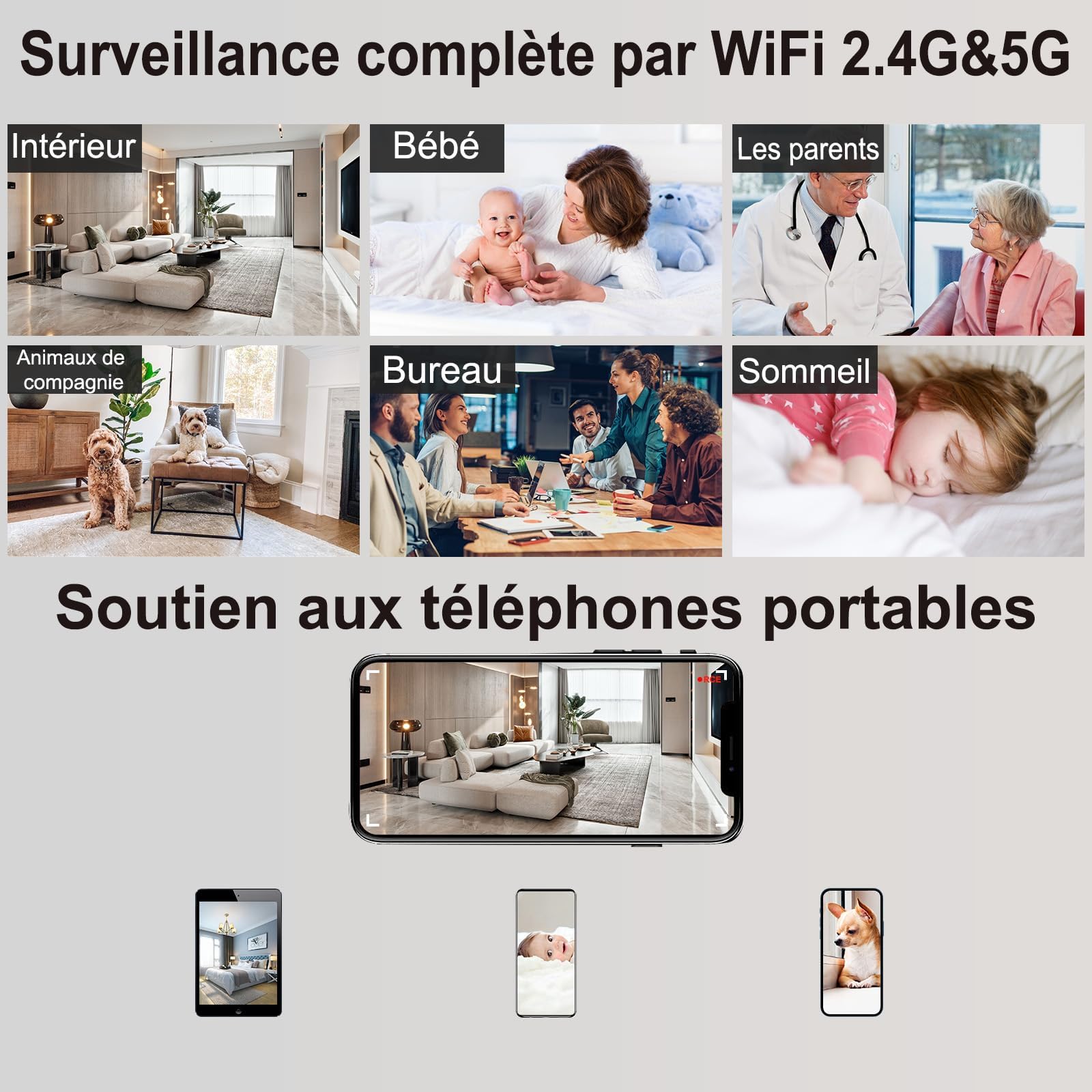 Caméra WiFi noire, 100% sans-fil, batterie 10400mAh rechargeable très longue autonomie, capteur 4 Mégapixels grands angle 120°, résolution Ultra HD 2K (2560... Installez-la chez vous pour assurer votre sécurité 24 heures sur 24., Grâce à votre téléphone, vous pouvez visionner des vidéos en direct à tout moment et contrôler ce qui se passe chez vous. Détection de mouvement : lorsqu'un changement de lumière ou de mouvement est détecté, la caméra cachée sans fil capture automatiquement l'anomalie et votre téléphone reçoit une notification instantanée, ce qui vous permet de surveiller facilement l'état de la pièce et de détecter rapidement toute situation anormale. Caméra Cachée Grand Angle 150 4K HD Camera Espion Sans Fil WiFi Avec 170 Grand Angle Caméra De Surveillance Wifi Interieur Alarme Maison Sans Fil Avec Camera Infrarouge Streaming Wifi A Distance Discrete Detecteur De Mouvement Mini Camera Diffusion en direct : la caméra cachée dans une horloge est compatible avec les réseaux sans fil 5G et 2,4G. Découvrez notre gamme de caméras de surveillance IP Wifi sans fil full HD et Ultra FD Vous souhaitez renforcer la sécurité de votre foyer ? Cette caméra intelligente est le choix idéal. TANGMI Caméra Espion, Horloge 2.4G & 5G WiFi Caméra Cachée, Vision Nocturne & Détection de Mouvement Camera Espion Discrete, Grand Angle 120° & Relecture Vidéo HD 1080P en Ligne