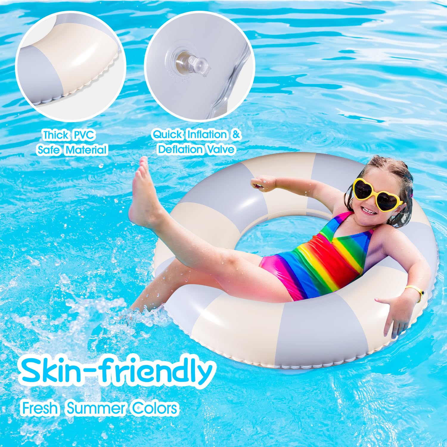 Anneau De Natation, 3 Pcs Bouées Gonflable Pour Enfants Et Adultes... Après dégonflage, la capacité de stockage est petite, il suffit de mettre dans le sac à dos, ne prend pas de place et est facile à transporter. 【Large gamme d'applications】Ces anneaux de natation rayés sont parfaits pour les piscines, les plages, les lacs, les fêtes ou d'autres activités aquatiques, vous permettant de profiter des plaisirs d'été ininterrompus avec votre famille et vos amis Bouee Piscine Adulte Apero Anneau De Natation,Anneau De Bain,Bouée Gonflable,Swim RingDe Natation Flottante Anneau De Natation Hawaïen Idéal Pour Les Adolescents Adultes Plage Et Piscine Anneau Gonflable PVC 72cm 【Facile à gonfler et à transporter】L'anneau de natation rayé est équipé d'une buse étanche et d'une conception de valve spéciale qui réduit le risque de fuite d'air. DESIGN EXQUIS : L'anneau de bain a des couleurs vives et des motifs exquis, ce qui est rafraîchissant et très approprié pour les fêtes de natation. UTILISATION LARGE : Il est très approprié pour les piscines, les plages, les lacs, les fêtes, les activités nautiques 【Design unique】Chaque anneau de natation a un design à rayures rétro pour créer une atmosphère estivale amusante, non seulement élégante et charmante, mais plus visible dans l'eau, vous permettant de garder un œil sur votre famille ou vos amis à tout moment et d'ajouter plus de plaisir à vos activités aquatiques. Lubibi 4 Pcs Anneau de Natation Gonflable, Bouée Gonflable Rétro Rayée en PVC Bouée Piscine, Jouets Aquatiques D'été pour Enfants et Adultes, pour Les Vacances à la Plage et Les Fêtes de