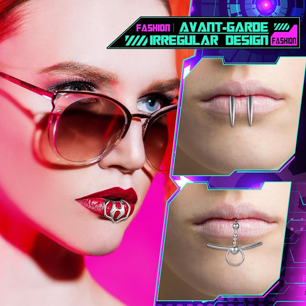 Anneaux Lèvres Vampire NICENEEDED 4 PCS Anneau à Lèvres Vampire En Acier Inoxydable Dents De Loup Réglables Et Non Perforantes Anneaux à Lèvres En Forme De C Pour Halloween Bijoux Punk Boby Faux Piercing Lèvres Sans Perçage Taille de l'anneau de dents de vampire : 0,8 x 10 mm, taille du brassard à lèvres à double cercle : 0,8 x 10 mm, taille du piercing à lèvres à pointe : 1,0 x 10,5 mm Niaspi Lot de 2 piercings en acier inoxydable avec crocs de vampire pour lèvres, dents, nez, septum, Acier inoxydable, Pas de gemme Matériau doux adapté aux peaux sensibles, sans irritation. Découvrez notre vaste gamme de 2 pièces Fermoirs de lèvres carrés gothiques de vampire, 1 paire d'anneaux de lèvres faux en acier inoxydable 316 de style Y2K sans perforation, convient pour un port quotidien et en soirée - non revêtu, adapté à toutes les saisons chez SHEIN, partie de notre Accessoires de costumes Retours gratuits... – alternative sans piercing idéale. Port indolore et sans pression. 【Acier inoxydable premium】 Léger et confortable. Facile à mettre et à enlever, tient fermement et ne tombe pas facilement.