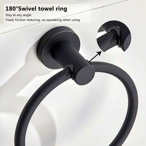 Porte-serviettes anneau porte-serviettes mural, design carré moderne... Rotation à 180° : L'anneau porte-serviettes noir pivote à 180° de haut en bas. Le support est doté d'un anneau en caoutchouc qui assure une utilisation fluide, évite les blocages, réduit le bruit et stabilise l'anneau mural. Supportant jusqu'à 10 kg, il est idéal pour suspendre serviettes et peignoirs lourds dans la salle de bain Porte-serviette Mural Anneau Pour Serviette En Acier Inoxydable Noir Mat, Fixation Support Serviette Salle De Bain équipement Cuisine Moderne Porte-serviettes Mural Noir - Anneau En