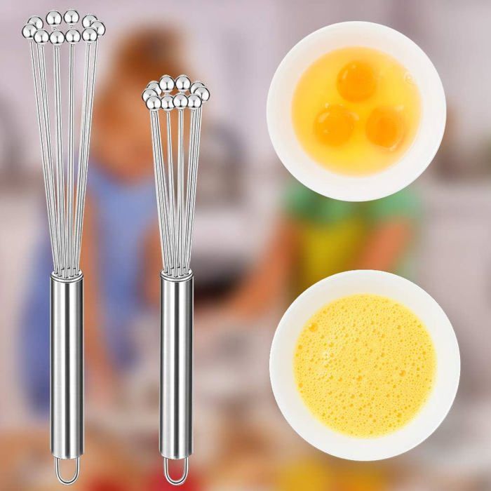 Batteur À Main, Fouet Électrique, Petit Mélangeur Portable À 3 Vitesses Fouet Magique Annlpoy 2pcs Petit Fouet Cuisine Portable Fouet à Bille En Acier Fouet Magique Cuisine Qualité Alimentaire et Résistant à la Rouille : Nos fouets de cuisine sont conçus avec des fils en acier inoxydable de qualité alimentaire, garantissant sécurité et durabilité Matériau : Acier inoxydable Couleur : Argent Dimensions : 33,00 נ8,50 נ3,20 cm Nom du produit et quantité : 2 boules d’agitation en acier inoxydable Description du produit : Matériau de haute qualité : Fabriqué en acier inoxydable durable, le fouet cuisine est résistant à la rouille. 2pcs petit fouet cuisine portable fouet à bille en acier inoxydable professionnel, pour Mélanger, Battre, Fouetter et Agiter - Design Ergonomique avec Griffes... Polyvalent : Le fouet cuisine est un outil pratique pour les amateurs de pâtisserie, car il peut être utilisé pour battre les œufs et la crème, mélanger la pâte et bien d'autres tâches culinaires. Disponible en plusieurs tailles : Le fouet comprend deux fouets, huit fils de 25 cm et huit fils de 30 cm, pour répondre à différents besoins de mélange.