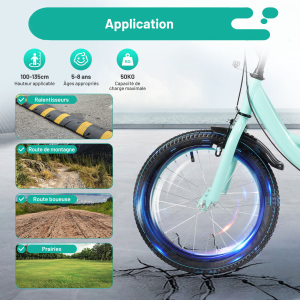 Dimensions de l'emballage : 89,5 x 18,5 x 45 cm / 35,23 x 7,28 x 17,71 pouces Contenu de l'emballage : 1 vélo pour enfant. Vélos Pour Enfants Vélo Pour Enfant De 5 à 8 Ans - Édition Standard - Avec Roues Stabilisatrices Et Lumière LED Velo Enfant 6-9 Ans [Design réglable] : la hauteur des accoudoirs peut être réglée de 60 à 60 cm et la hauteur du siège de 60 cm à 66 cm, ce qui permet aux enfants d'une taille comprise entre 3,28 pieds et 4,42 pieds de faire du vélo confortablement. Veuillez noter qu'en raison de l'éclairage lors de la prise de vue, le vélo pour enfant peut présenter de légères variations de couleur et des différences de 1 à 3 cm en raison de la mesure manuelle. [Conduite stable] : les pneus élastiques en caoutchouc amortissant les chocs et 2 roues stabilisatrices qui forment une structure triangulaire stabilisatrice assurent une expérience de conduite plus stable, même sur la boue, le sable et les routes de montagne. Vous pouvez le ranger dans le garage, le coffre et d'autres petits endroits sans prendre beaucoup de place, de sorte qu'il peut être facilement rangé lorsque vous n'utilisez pas le vélo pour enfants. En même temps, le couvre-chaîne de vélo protège les enfants contre les blessures. Réglage de la hauteur du siège : 56-67 cm. 1 manuel d'utilisation multilingue (français non garanti). Dimensions du produit (L x l) : 110 x 37,5 cm. La chaîne de vélo en acier et le couvercle de chaîne en plastique de qualité supérieure sont plus résistants à l'usure et offrent de bonnes performances à long terme. Les pneus antidérapants offrent également une excellente adhérence et stabilité pour un cyclisme sûr. Vélo Speed Rouge 16'' - La Grande Récré Glerc Vélo Enfant 16 Pouces avec Roues stabilisatrices & Porte-bidon pour garçons et Filles de 4... Âge approprié : 5-8 ans Distance entre le levier de frein et la poignée en caoutchouc : 2,5 cm. Distance entre les accoudoirs : 53 cm., Poids total : 9,55 kg., Poids net : 8,25 kg. Utilisation : Le vélo pour enfant est adapté aux enfants d'une taille de 3,28 à 4,42 pieds et d'un poids allant jusqu'à 110 livres pour rouler sur différentes routes, telles que les routes accidentées, les routes boueuses, les prairies, les routes de montagne, les zones sablonneuses, les zones humides, etc., Indications : 1., Veuillez lire attentivement les instructions de montage (français non garanti) et suivre les étapes. Hauteur appropriée : 100-135 cm., Charge maximale : 50 kg.