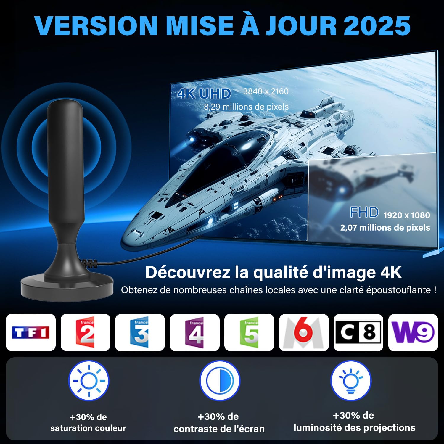 Avec son filtre 4G intégré, votre antenne TV intérieur puissante élimine les interférences et les canaux perdus avec les signaux de téléphone mobile 4G, vous offrant ainsi une expérience immersive de la télévision avec des images nettes, des couleurs éclatantes et un son incroyable. (Recherchez à nouveau les chaînes à chaque fois que vous changez d'emplacement. antennes TNT Compatible DVB-T2, 4K 1080P pour Chaînes Locales, Base Magnétique, Câble 3m. 25,64 €. sur . Aller sur la boutique. Antenne TV Interieur... antenne TV intérieur Grâce à la dernière technologie d'amplification du signal, la qualité de l'image est améliorée de 80 % par rapport aux antennes traditionnelles, antennes TNT vous permettant de profiter du merveilleux contenu des chaînes haute définition telles que 4K, 1080P et 720P Antenne TV intérieur puissante True HD TV prend en charge tous les types de signaux HD, tels que le 720p, le 1080i, le 1080p, le 2K et même le 4K HD, pour une qualité d'image exceptionnelle au quotidien. fr et saisissez votre adresse pour voir quelles chaînes sont disponibles dans votre région. Description du produit Dites adieu aux factures et profitez simplement des chaînes HDTV ! Si antenne TV intérieur ne parvient pas à capter correctement les canaux, placez-la aussi près que possible de la fenêtre et effectuez une nouvelle recherche de canaux. Antenne Tnt Intérieure Hd Antenne Camping Car Antenne TV Intu00e9rieur Puissante TNT HD Pour TV 4K 1080P HDTV Antennes Tnt Antenne Numérique Facile à Installer Si vous n'êtes pas satisfait des performances de notre antenne, de notre processus d'installation ou de notre expérience, nous vous invitons à nous contacter à tout moment. Antenne TV Intérieur Puissante TNT HD, Antenne HD Intelligente avec Base Magnétique Les Chaînes Locales 4K 1080P, 5M de Câble. 23,49 € · ONE FOR ALL SV9015... TV antenne Cette installation flexible vous permet de capturer rapidement les signaux TV n'importe où dans votre maison et de profiter d'une expérience de visionnage TV stable en quelques minutes Placez l'antenne dans une zone dégagée ou essayez un autre emplacement pour recevoir plus de chaînes de télévision. Il suffit de connecter antenne TV tnt directement à votre TVHD muni d'un tuner numérique intégré ou d'ajouter un boîtier de conversion pour recevoir les signaux de télévision numérique. Fire Tv Antenne TV Intu00e9rieur Puissante TNT HD, Antenne TV Intu00e9rieure Avec Amplificateur, 420km Ru00e9ception Super Longue 360u00b0 - Base Magnu00e9tique Forte - Ru00e9cepteur Tu00e9lu00e9vision Numu00e9rique,TV USB Tv Samsung La satisfaction du client est notre engagement:Nous nous engageons à vous offrir une expérience client inégalée. Grâce à leur qualité d'image exceptionnelle, nos antenne TV intérieur vous offrent une expérience immersive de la télévision, avec des images nettes, des couleurs éclatantes et un son incroyable. Base magnétique super puissante:antenne tv intérieur puissante l'installation devient un jeu d'enfant, il suffit de la fixer magnétiquement à votre téléviseur ou à une autre surface métallique. Antenne tv interieure Notes d'achat: Le nombre de canaux de réception dépend de la couverture du signal et des canaux disponibles dans votre région., Rendez-vous sur matnt., tdf. N'hésitez pas à nous contacter. Notre antenne TV tnt est équipée d'une puce IC intelligente de dernière génération qui intègre une technologie d'amplification de signal de pointe pour améliorer la qualité de l'image de 80 %. Installation rapide et facile en 2 minutes ! Nos antennes TV vous permettent de regarder la TNT, les chaînes locales et de nombreux programmes HD comme TF1, France 2, France 3, Canal+, France 5, M6, Arte, D8, W9, TMC, TFX, NRJ12 sans frais supplémentaires attendez. Vous pouvez maintenant profiter de vos émissions préférées en haute définition. Nous offrons une politique de retour de 30 jours sans tracas et une assistance technique professionnelle à vie.