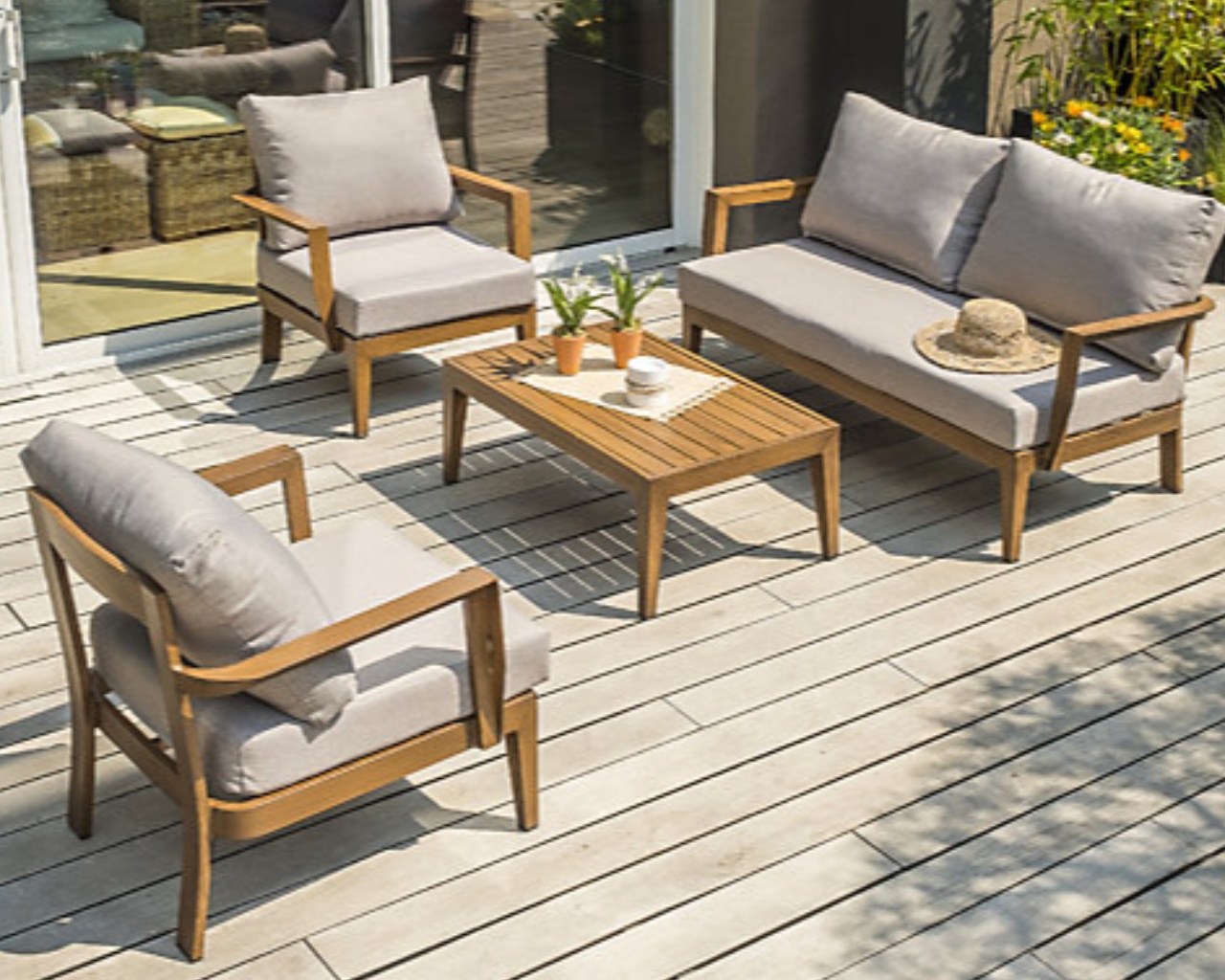 Avantages du produit : - Grande table de 110 x 52 cm- Coussins d'assise de 9,5 cm d'épaisseur- Coussins de dossier de 20 cm d'épaisseur- Bois d'acacia avec belle teinte- Chaises et fauteuil avec grande profondeur d'assise et accoudoir- Coussins à double couture, imperméable et lavable- Housse amovible avec fermeture éclair Caractéristiques techniques : - Matériaux : Bois d'acacia certifié FSC, exploitation durable des forêts- Matière coussin : 100% Polyester- Table (LxlxH) : 110 x 52 x 45 cm- Fauteuil (LxlxH) : 113 x 75 x 77 cm- Chaise (lxH): 75 x 77 cm- Épaisseur coussins : Assise 9,5 cm, dossier 20 cm- Couleur : Anthracite Contenu de la livraison : - 1x Salon de jardin Lounge Atlas- Matériel de montage- Livré en 3 Paquets Avertissement De Sûreté Attention aux bords tranchants. CASARIA® Lounge en polyrotin XL salon de jardin extérieur avec table et... DESIGN INTEMPOREL : Ce salon de qualité supérieure vous invite à profiter d'un moment de détente dans votre extérieur. Les housses amovibles avec une fermeture éclair sont finement travaillés, sans boutons cousues, de manière à ce qu'elles puissent être facilement retirées et lavées en cas de besoin. Salon De Jardin En Bois Casaria Salon De Jardin Aluminium Anthracite Bern 1 Table 6 Chaises Fauteuil Et Chaises Pour une utilisation en intérieur et en extérieur, assurez-vous de prendre soin et d'entretien pour éviter les dommages ou les blessures. Description du produit L'ensemble de jardin Lounge ATLAS en bois d'acacia est composé d'une table, deux chaises et un fauteuil. Toujours enlever et laver les housses séparément avant le lavage en machine. En plus d'être confortable, il est très esthétique de par sa forme et son materiau. FACILITÉ D'ENTRETIEN : Les coussins d'assise sont hydrofuges, ce qui permet de facilement essuyer les liquides qui peuvent y couler. Ce ensemble confortable offre de la place pour 4 personnes et convient parfaitement à l'extérieur comme à l´intérieur. De plus, les housses sont imperméables. L'ensemble de jardin Lounge ATLAS en bois d'acacia est composé d'une table, deux chaises et un fauteuil. Ce salon de jardin est équipé de 20 cm coussins de dossier de 20 cm d´épaisseur et de coussins d´assise de 9,5 cm (couture double) de couleur crème Ce salon de jardin est équipé de 20 cm coussins de dossier de 20 cm d'épaisseur et de coussins d'assise de 9,5 cm (couture double) de couleur anthracite. CARACTERISTIQUES TECHNIQUES - Dimensions table (LxlxH) 110 x 52 x 45cm // Banc (LxlxH) 113x75x77 cm // Chaises (LxlxH) 50x75x77 cm // Capacité de charge banc : 300 kg, chaise : 160 kg // Couleur : Anthracite Conjunto De Jardín Lounge Atlas De Madera De Acacia Set De 1 Mesa 2 Sillas Y Un Sillon 4 Personas