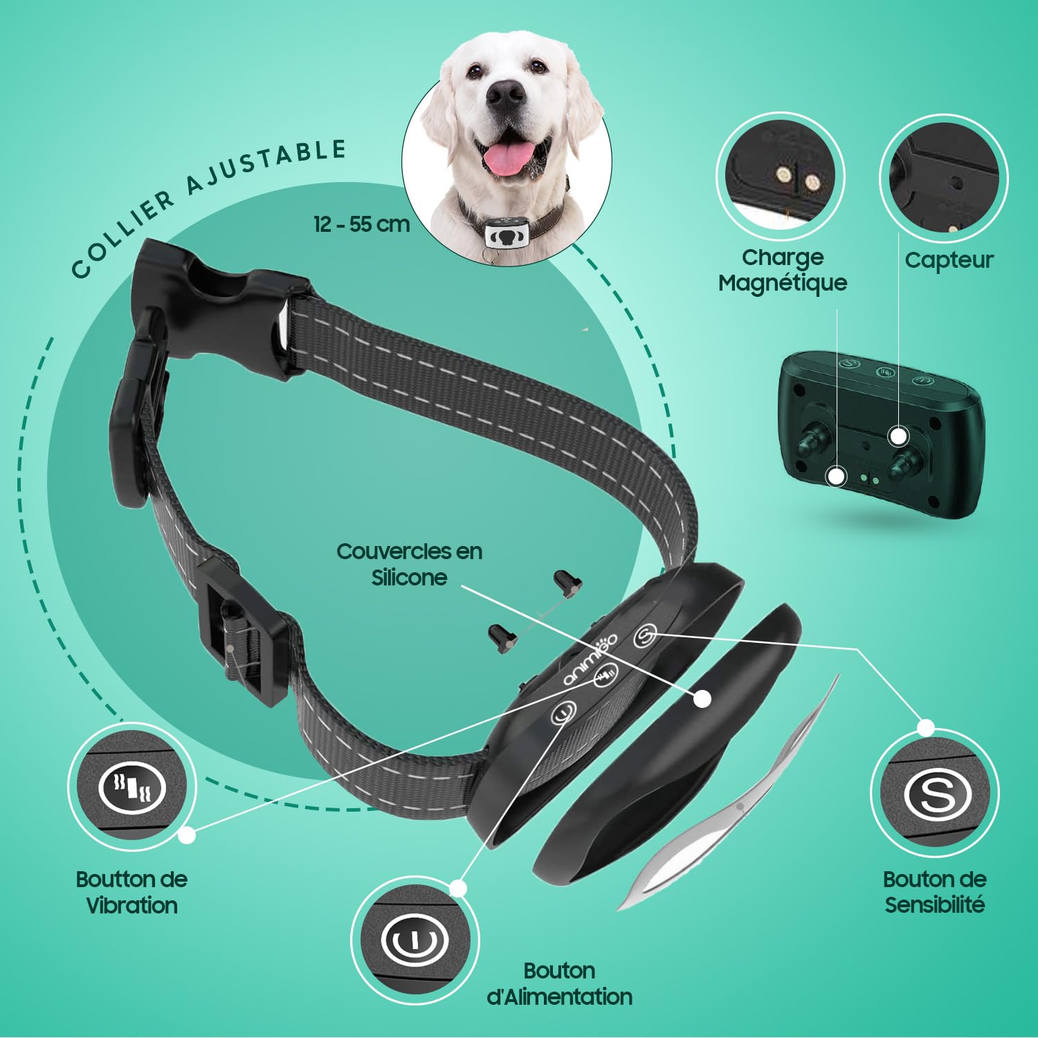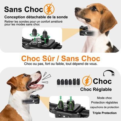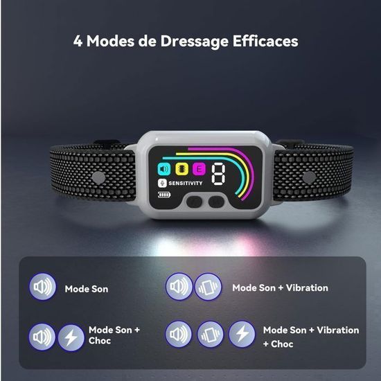3 Modes de formation humaine : collier anti-aboiement pour chien avec modes bip, vibration et choc, 0-5 niveaux de sensibilité réglables. Collier écorce... Spécifications : Matériau du produit : ABS Niveau d'étanchéité : IP67 Modes de dressage : (5 modes) son/vibration/son+vibration/son+vibration+Choc Électrique/son+vibration+Choc électrique amélioré Mode de déclenchement : son ou vibration Mode de chargement : Type-c Mode d'emploi : Appuyez sur le bouton d'alimentation et maintenez-le enfoncé pour allumer ou éteindre l'appareil. 5 modes d’entraînement et 5 niveaux de sensibilité réglables: Notre collier de dressage pour chien propose 5 modes efficaces (Bip, Vibration, Choc Électrique, Son+Vibration, Boost de Choc). Un outil moderne et technologique pour aider votre chien à adopter de bonnes habitudes sans stress ni contrainte. Pour un environnement calme, les niveaux 3 à 4 sont recommandés, et pour un environnement plus bruyant, les niveaux 1 à 3., Cette flexibilité rend l’entraînement progressif et adapté à chaque situation, favorisant une correction douce et maîtrisée. Description du produit Puce intelligente de détection des aboiements Le collier anti-aboiements est équipé d'un capteur intelligent. Après 7 activations consécutives, le mode de protection intégré s’enclenche automatiquement afin de protéger votre chien contre une stimulation excessive. Collier Anti-aboiement Pour Chiens Rechargeable, Collier Dressage Pour Petit Moyen Grand Chien Detection Intelligente Des Aboiementsvert 90047622 Écran LED couleur intelligent et enregistrement des aboiements: Le grand écran LED couleur affiche clairement le mode actif, le niveau de sensibilité et l’état de la batterie, vous permettant de contrôler facilement le fonctionnement de l’appareil. Par exemple, en mode sensibilité, une brève pression sur cette touche permet de sélectionner le niveau de sensibilité. Collier Anti Aboiement Rechargeable Pour Chien - Détection Collier Anti Aboiement Intelligent 5 Modes Une brève pression permet de basculer entre les interfaces fonctionnelles. En mode aperçu, vous pouvez tester l'intensité de stimulation actuelle sur votre animal. Le collier ne s'active que lorsque le chien qui le porte aboie, ce qui permet de dresser votre chien rapidement et correctement. Il y a 3 jours · [Collier Anti Aboiement Chien Sécurité Sensibilité Réglable]- Ce collier anti-aboiement pour chien offre 7 niveaux de sensibilité pour tous les volumes d'aboiement possibles et pour différents environnements, ce qui vous permet de régler le bon niveau de sensibilité pour votre furet Le collier anti-aboiements dispose également d’une fonction d’enregistrement du nombre d’aboiements, idéale pour suivre les progrès de votre animal jour après jour. Cette technologie réduit considérablement les activations erronées et permet un dressage plus sûr, efficace et respectueux de l’animal. La sangle en nylon ajustable convient aux chiens de 8 lbs (3,5 kg) à 68 kg, et sa longueur maximale de 25 pouces (63 cm) assure un confort optimal. Son interface intuitive rend l’utilisation simple, même pour les débutants. Puce AI intelligente et détection précise: Ce collier anti-aboiement intelligent intègre une puce AI de nouvelle génération capable d’identifier les aboiements réels de votre chien tout en filtrant les bruits extérieurs et les aboiements d’autres chiens. Utilisez uniquement un chargeur 5V pour garantir la sécurité de l’appareil et prolonger la durée de vie de la batterie.