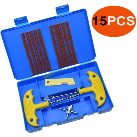 Kit de réparation Tubeless - 11pcs - Compatible voiture - Couleur bleue... Tout ce dont vous avez besoin sans avoir à acheter de pièces supplémentaires. 【 Matériau de haute qualité 】 : Outillage de réparation des pneus est fabriqué en acier inoxydable de haute qualité, résistant à la déformation et à la rouille. Bombe Anti Crevaison DODUOS 58PCS Kit Anti Crevaison Voiture, Kit Meche Pneu Voiture Kit D Kit Mèches Pneu 58 Pièces 【 Kit complet Meche Pneu Crevaison 】 : 30 bouchons de pneus + 1 foret à filetage + 1 foret en forme de cuillère + 1 tête de filetage + 2 forets en forme de cuillère + 1 couteau + 1 clé hexagonale + 1 valve quatre-en-un + 1 démonte-pneu + 6 bouchons de valve en plastique noir + 6 écrous antivol en acier inoxydable + 6 valves + Manuel d'instructions. La poignée en forme de T rotative offre une prise ferme et sécurisée lors de la réparation des pneus, tout en offrant plus de couple et de confort lors du perçage, réduisant ainsi la fatigue des mains 【 Facile à utiliser 】 : Réparation rapide et facile des pneus sans avoir besoin de retirer la roue, convient à la plupart des voitures, des VUS, des véhicules électriques et des motos. Kit réparation pneus 58 pièces anti-crevaison pour voiture et moto - Auto