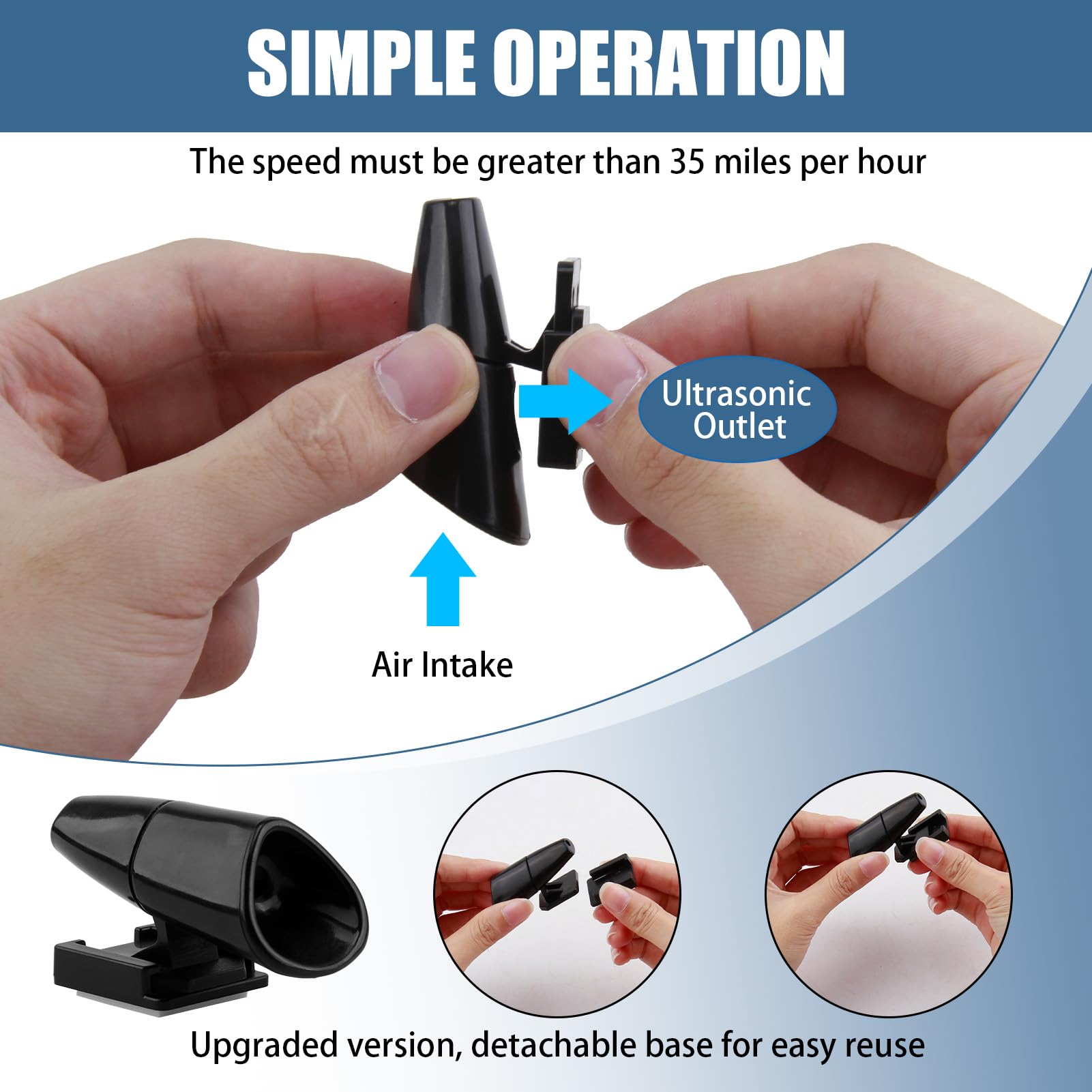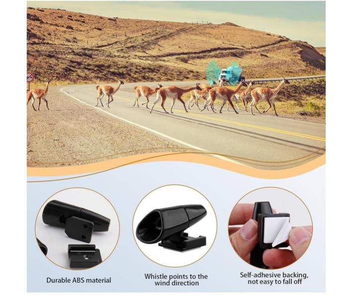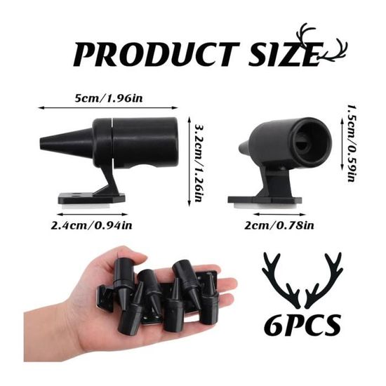Sifflet Pour Voiture Alerte Animaux Sifflet Ultrason Anti Gibier FLYING-4PCS Sifflet Avertisseur Pour Voiture Ultrason Anti Gibier Anti Sanglier Voiture Sifflet Anti Gibier Voiture Smomend 6 Pièces Sifflet Ultrason Anti Gibier, Sifflet Ensemble Inclus]Le lot comprend 6 sifflet ultrason voiture, chacun équipé d'un ruban adhésif double face pour une fixation rapide. Suffisant pour répondre à... Les ultrasons sont inaudibles pour les personnes et les animaux à l'intérieur du véhicule. Installation facile : Retirez le film adhésif et fixez l'appareil sur la calandre ou le capot. Nettoyez votre véhicule avant utilisation. Produit :Sifflet Ultrason Quantité : 6 pièces Couleur : Noir Haute qualité : Le sifflet ultrason est fabriqué en plastique abs robuste, résistant aux températures extérieures élevées et négatives. Il se retire facilement de son socle pour le nettoyage. Compatibilité : Sifflet ultrason compatible avec tous les véhicules, y compris les motos, les camions, les suv, les vtt, etc. Haute qualité : Le sifflet ultrason est fabriqué en plastique abs robuste, résistant aux températures extérieures élevées et négatives. Pack de 8 sifflets à ultrasons pour éviter les collisions avec les cerfs ! Colle sur ton pare-chocs ou calandre, s'active à partir de 35mph
