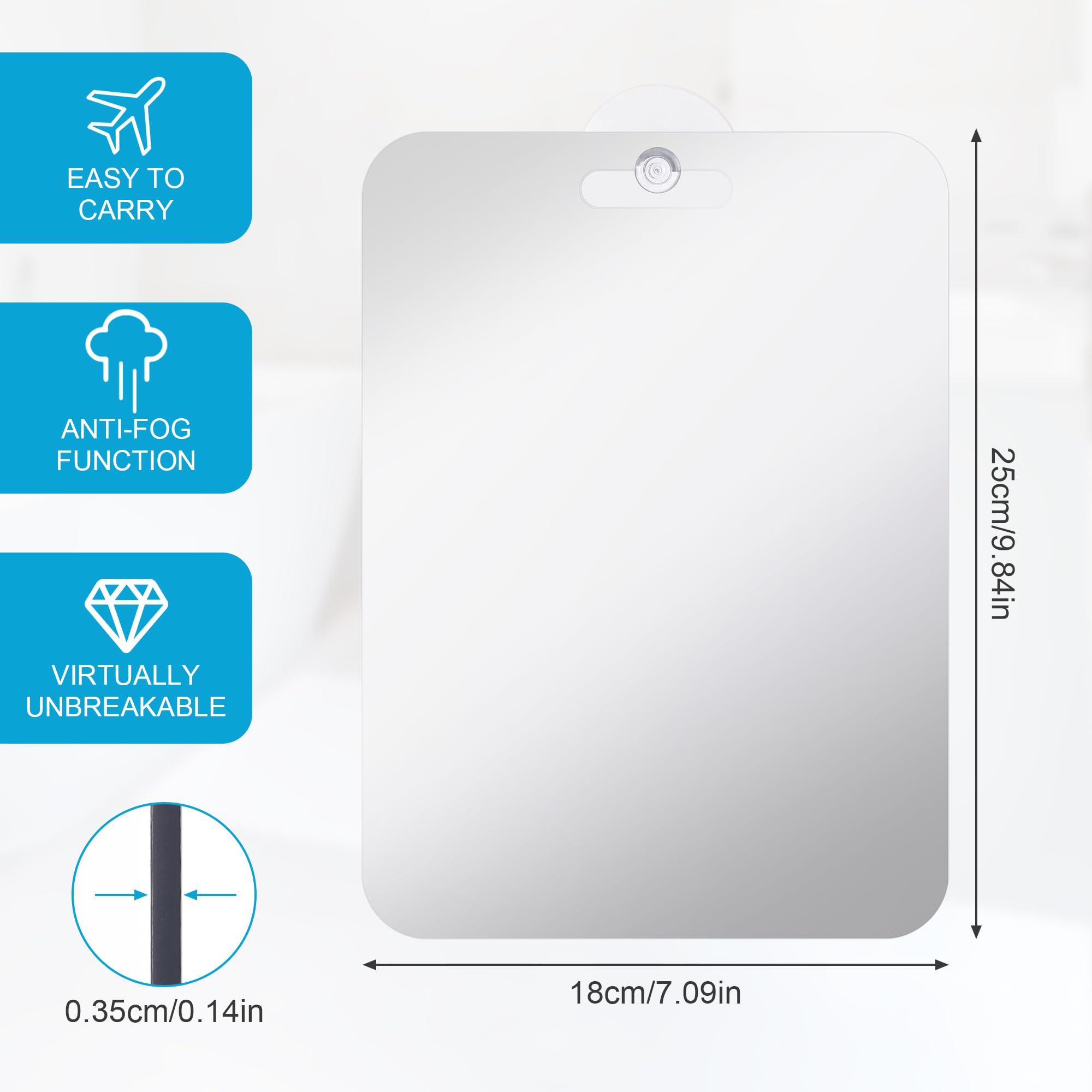 Installation facile : Crochets auto-adhésifs en acier inoxydable, ne nécessitant aucun perçage, faciles à installer. Miroir de rasage antibuée : Contient 1 miroir de rasage d'environ 25 x 18 cm et 2 crochets adhésifs en acier inoxydable. Miroir Salle Bain Sans Cadre Miroir De Douche Anti-buéeMiroir De Douche Mural Anti-buée Avec Miroir Maquillage Antidérapant Miroir de rasage antibuée : Contient 1 miroir de rasage d'environ 25 x 18 cm et 2 crochets adhésifs en acier inoxydable. Idéal pour le rasage et le... Idéal pour le rasage et le maquillage. Miroir de douche Miroir de rasage Miroir de douche sans cadre anti-buée Miroir de douche de voyage - Fabriqué en acrylique de haute qualité, il n'est pas facile à endommager, il est plus sûr, plus léger et plus durable que le verre traditionnel. pour vos personnes préférées. Le miroir de douche est un cadeau créatif pour le petit ami, le père, le frère, le camarade de classe, et peut également être utilisé comme cadeau de Noël, cadeau d'anniversaire, cadeau de Saint-Valentin, etc. Matériau de haute qualité : Le miroir de rasage est fabriqué en acrylique de haute qualité, qui n'est pas facile à endommager, sûr et pratique par rapport aux miroirs de douche traditionnels. Convient aux surfaces lisses et plates telles que le carrelage, le verre, les miroirs, l'acier inoxydable, l'acrylique, etc. Il peut être utilisé partout : miroir de cabine, miroir d'armoire ou miroir de porte arrière, miroir de baignoire, miroir de maquillage ou miroir de surface normale, miroir de cabine, miroir de douche extérieur, etc. Il peut être utilisé comme miroir de maquillage, miroir de rasage ou à des fins de beauté générale. Fabriqué en Acrylique, ce Petit Miroir non Verre a le Même Vrai Reflet de Miroir sans Aucune Distorsion ! Il s'git d'un Miroir Portable De Salle De Bain Anti... REMARQUE : Évitez de serrer le miroir par gravité lorsque vous l'utilisez. Cadeau pratique : Miroir de douche sans cadre avec une forme de coin arrondi, élégant et moderne. - Le miroir de bain est parfait pour la salle de bains, la chambre à coucher, le dressing et d'autres pièces. Miroir De Douche Grande Miroir Rasage, Petit Miroir À Suspendre Pour