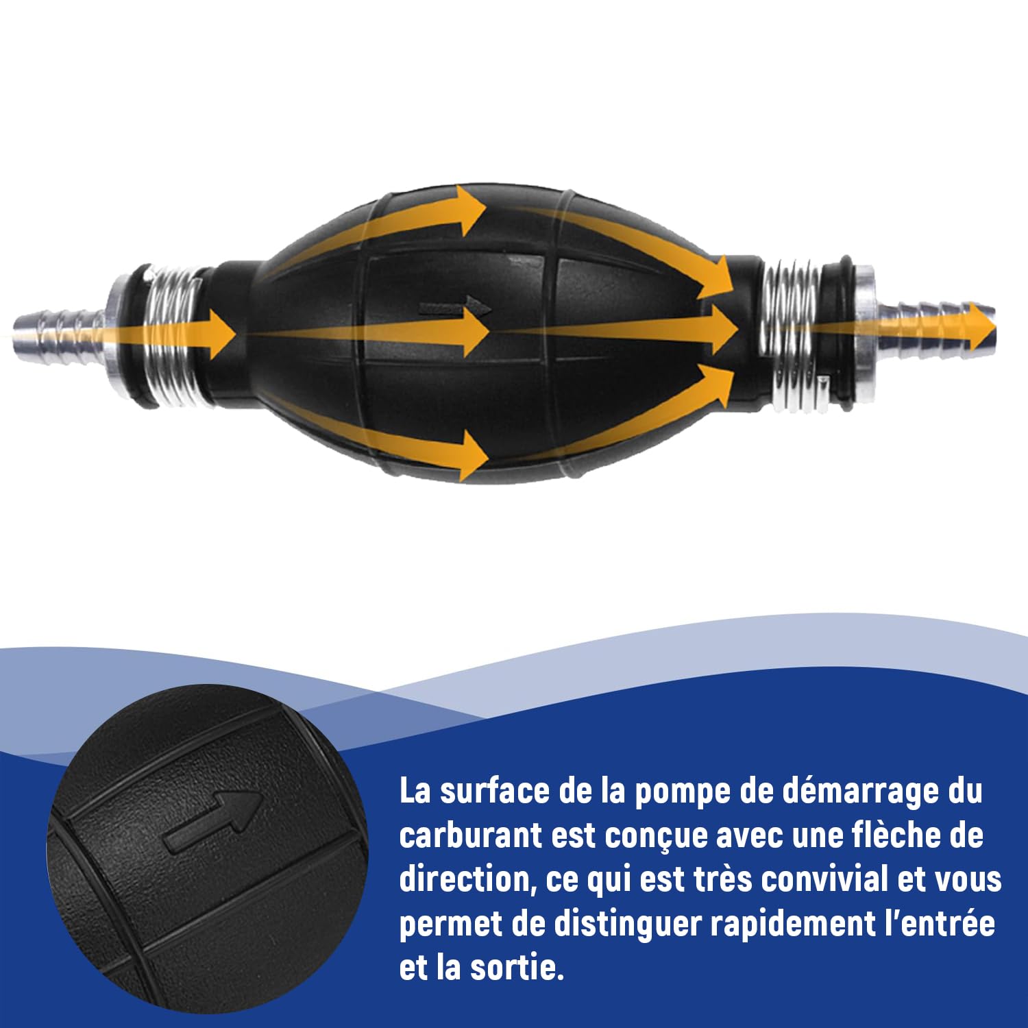Longueur totale : environ 150 mm. Pope anuelle à eau,Pope à siphon pour essence gaz huile... 【Application】Conçue pour les moteurs à essence et diesel, cette pompe manuelle est parfaite pour diverses utilisations. * Pour amorcer les moteurs diesel sur les voitures, motos et bateaux., *Pratique à utiliser. Pompe Diesel Essence Voiture Bateau POMPE MANUELLE FIABLE Clapet Anti-retour Pour L'introduction De Pompe à Bulbe 8mm Valve Anti-retour Cela garantit un démarrage fluide et facile des moteurs sans avoir besoin d'un pompage intensif. Caractéristiques : * L'ampoule manuelle pour apprêt adaptée à l'essence du diesel est livrée avec une valve de passage installée pour aider à amorcer rapidement le carburant. Largeur de l'ampoule : environ 43 mm. Il peut être utilisé comme pompe manuelle pour les bateaux, fournissant du carburant aux moteurs hors-bord. En outre, il est idéal pour les systèmes à 1 ou 2 réservoirs sans amorçage ESP, ainsi que pour le transfert d'huile végétale ou de diesel. * Pour introduire du carburant dans la pompe à carburant après le remplacement du filtre à carburant. Caractéristiques : Matériau : caoutchouc, alliage d'aluminium., Couleur : noir. Bouchon mise à l'air / reniflard pour réservoir d'essence avec valve... * Utilisé comme pompe manuelle dans les bateaux pour l'alimentation en carburant du moteur hors-bord. La durabilité est également assurée, permettant une performance durable et fiable. Pompe manuelle à amorce de carburant 8 mm avec clapet anti-retour facile et pra