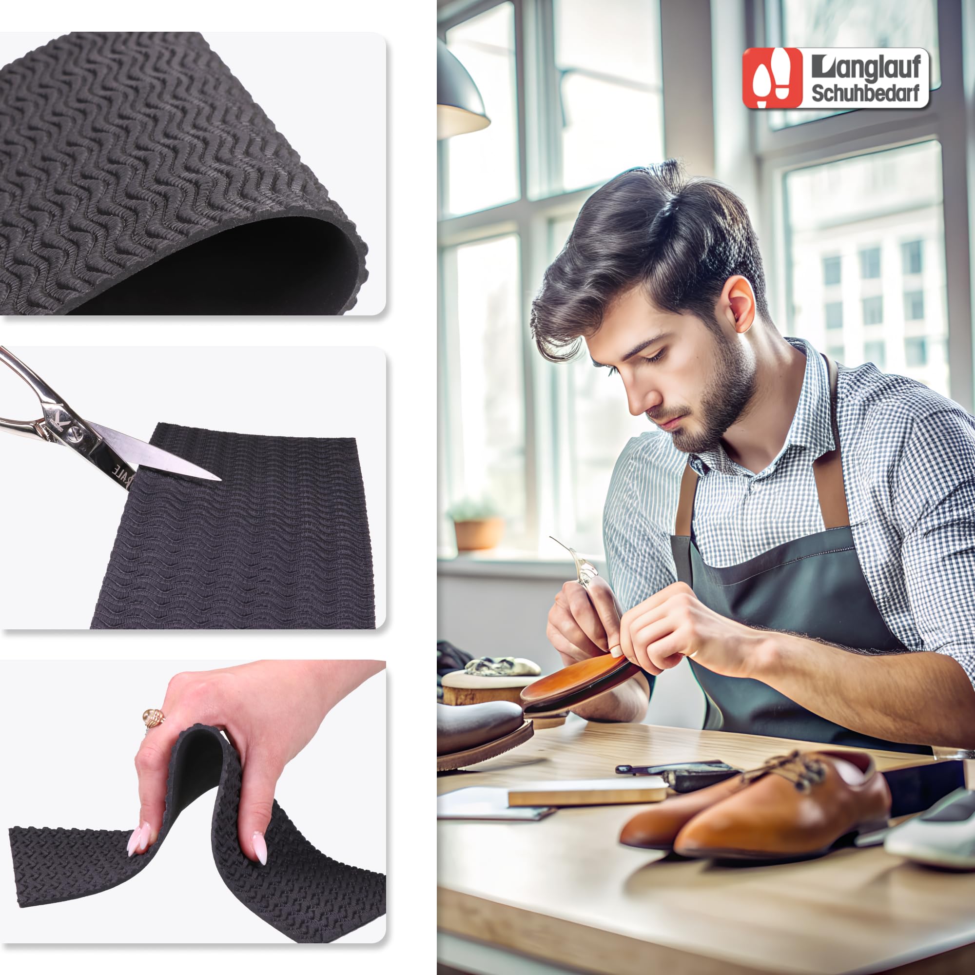 Semelles en caoutchouc cousues pour hommes, style tendance, pour chaussures en cuir décontractées, chaussures de marche, baskets plates, semelle extérieure Cela signifie que vous avez suffisamment de semelles en caoutchouc pour réaliser plusieurs projets de chaussures. Plaque Caoutchouc Profil Ondulé Grand Caoutchouc De Réparation De Chaussures Antidérapant Pour La Confection De Semelles De Chaussures Ou Comme Revêtement Antidérapant - 3,5 Mm D'épaisseur, Profil Ondulé - Noir Plaque Caoutchouc Semelles De nombreuses possibilités d'utilisation : Notre plaque de caoutchouc Welle 3,5mm avec profil antidérapant est parfaite pour la fabrication de semelles de chaussures selon vos idées personnelles. 1 paire de semelles en caoutchouc pour bricolage, ... – Grandado Matériau en caoutchouc synthétique : fabriqué à partir de caoutchouc synthétique, notre caoutchouc de réparation de semelles de chaussures est non seulement résistant à l'usure mais également imperméable et flexible, offrant une protection durable pour vos semelles de chaussures. Informations sur la taille : 37.5x28cm. et épaisseur de 2.2mm, notre protège-semelle de chaussure n'est... Facile à utiliser : la plaque de caoutchouc est facile à découper et à utiliser avec notre colle de contact Kövulfix. Avec les semelles de chaussures à prix avantageux de Langlauf Schuhbedarf, la réparation de vos chères chaussures n'a jamais été aussi simple. Et pour plus de stabilité, le caoutchouc pour semelles de chaussures peut même être cousu. Facile à découper, adhésif et résistant à l'abrasion Qualité supérieure Couleur : au choix Épaisseur : 3,5 mm Longueur : 58 cm Largeur : 25 cm Unité d'emballage : 1 pièce Durable et fiable : Notre plaque de caoutchouc pour semelles est fabriquée à partir de matières premières de qualité supérieure, ce qui lui assure une longue durée de vie et des performances fiables. Informations sur le produit : semelle en caoutchouc de 3,5 mm, profil ondulé de 580 x 250 mm, grand caoutchouc élastique très antidérapant, idéal pour le sport et les chaussures de loisirs.