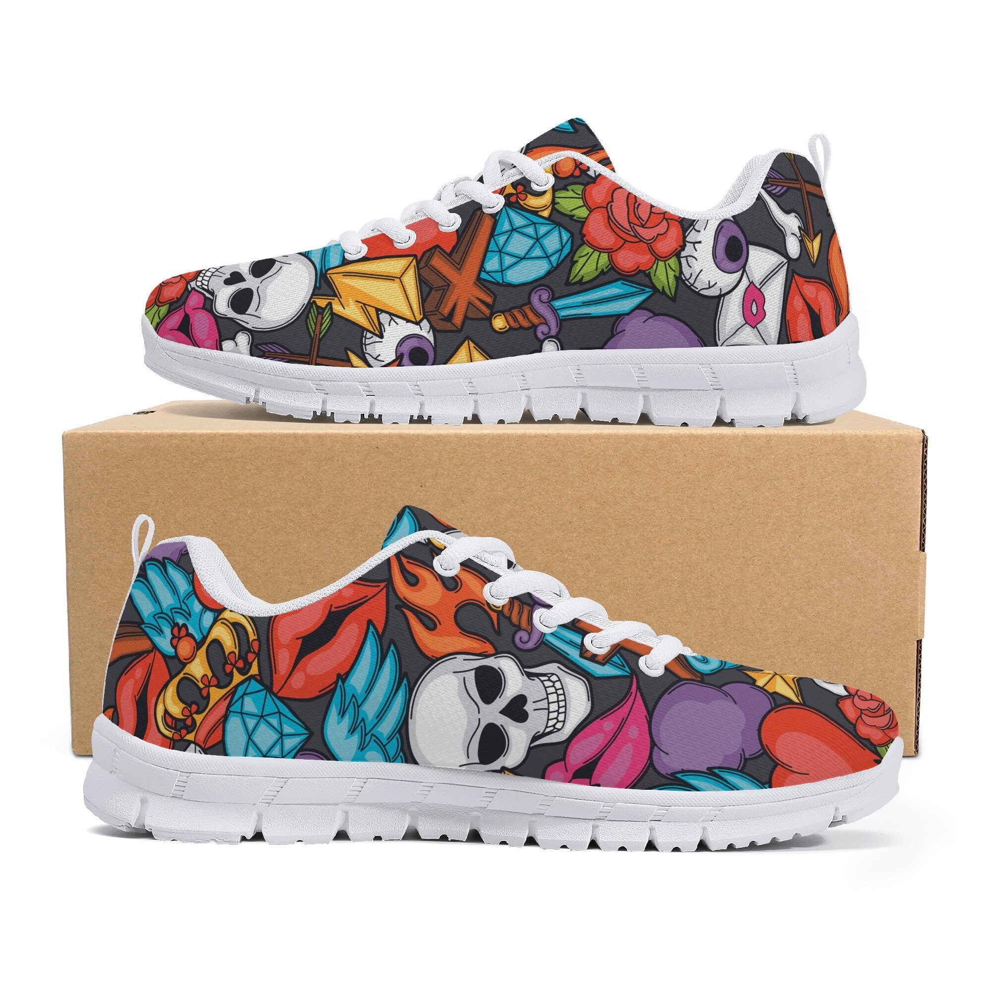 Chaussures de sécurité Légères - Baskets de sécurité avec protection de... Baskets de sport polyvalentes adaptées à une variété d'activités telles que le jogging, les sorties décontractées, l'entraînement, les voyages ou le fitness, ce qui en fait un excellent ajout à toute garde-robe active. Tailles unisexes disponibles pour les hommes et les femmes. Baskets Gothiques Légères Chaussures Fitness Antidérapantes Chaussures De Course GOOBON Pour Chaussures Unisexe Tête De Mort Le motif tête de mort élégant ajoute une touche audacieuse et unique à vos chaussures quotidiennes, parfait pour les personnes qui veulent que leurs chaussures se démarquent et reflètent leur personnalité. Collant,Collants noirs en résille pour femmes et filles, 1 pièce, motif... Design léger et respirant avec une tige en maille respirante qui permet une circulation d'air maximale, gardant vos pieds au frais et confortables pendant la journée ou l'activité physique. Chaussures de course à pied pour homme - Style vintage gothique punk - Tête de mort - Semelle en caoutchouc - Respirantes et confortables, Multicolore, 11.5 US
