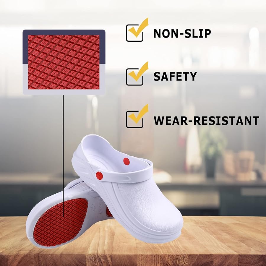 Nettoyage rapide à l’eau et au savon pour garder vos chaussures de travail toujours propres. Chaussures Sécurité Confortables Sabots De Chef Antidérapants Pour Hommes Et Femmes Multifonctionnels Sabot Jardin Femme La semelle texturée antidérapante offre une excellente stabilité même sur sols mouillés ou huileux, réduisant le risque de glissade et améliorant la sécurité au travail. Bottes de Pluie Enfant BEKIDDY - Isolées en Mousse EVA - Imperméables... Ces mules et sabots homme sont faciles à enfiler et à retirer, idéals pour un usage professionnel intensif. Design pratique et polyvalent: Sabot de jardin homme adaptés à différents environnements : cuisine, jardin, hôtel, clinique ou maison. Sabots Unisexes En EVA, Mules De Cuisine Imperméables Et Antidérapantes... Confort léger toute la journée: Conception ultra-légère qui réduit la fatigue liée aux longues heures debout. Polyvalentes et fonctionnelles, ces chaussures de cuisine femme et sabot de jardin homme conviennent aussi bien aux professionnels (chefs, serveurs, infirmières, personnel d’entretien) qu’aux particuliers à la maison ou au jardin. Leur style simple et unisexe en fait un choix pratique pour hommes et femmes. Vêtements imperméables pour hommes et femmes, impe... – Grandado Semelle antidérapante fiable: Chaussure de cuisine femme et sabot homme avec semelle texturée offrant une excellente adhérence sur sols mouillés, huileux ou glissants, assurant stabilité et sécurité pendant le travail. Adaptés aux environnements exigeants: Sabot jardin homme conçus pour résister à l’eau, aux éclaboussures et aux salissures.