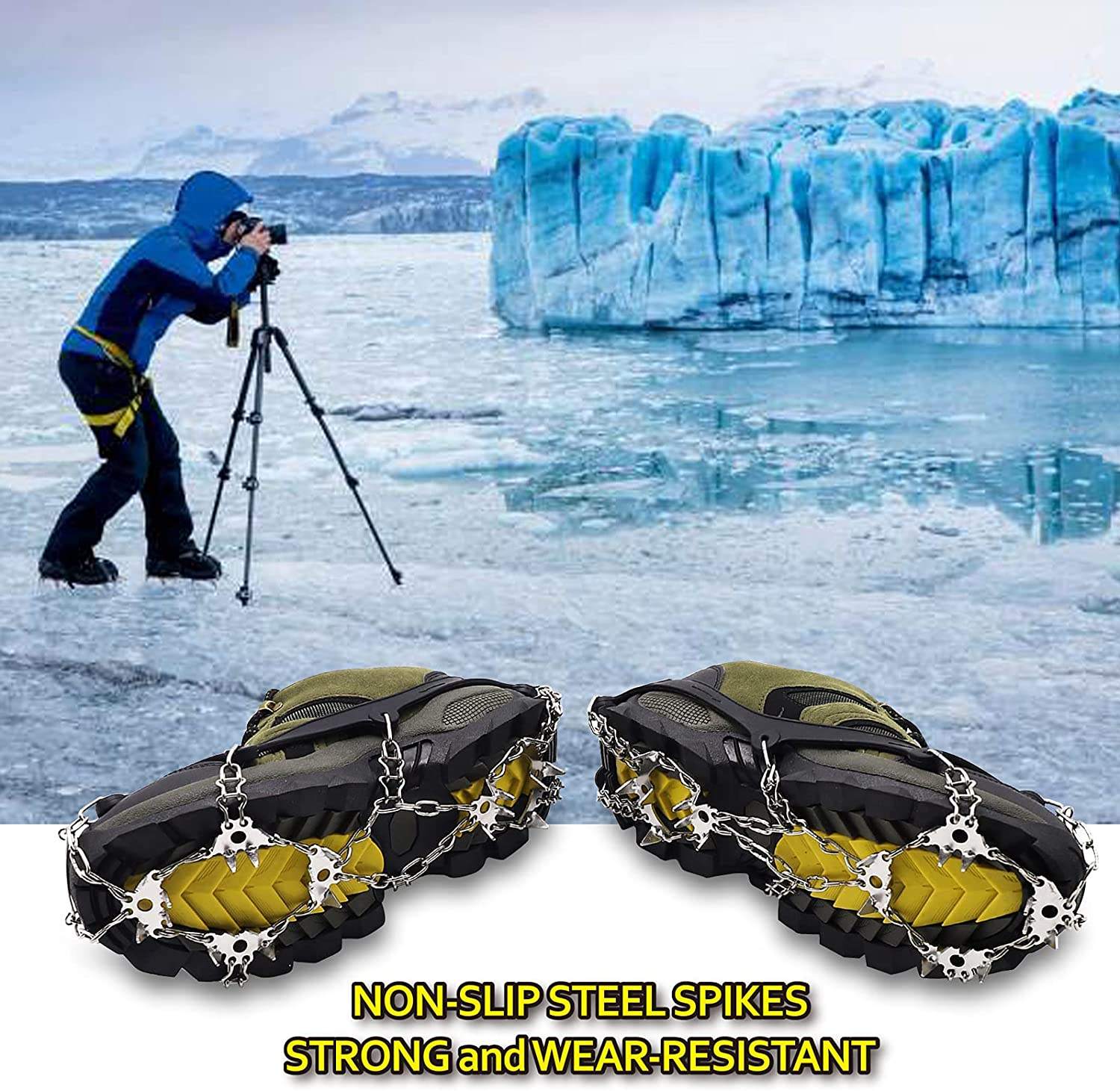 [Confiance en terrain difficile] Avec la meilleure adhérence et la stabilité que ces crampons offrent, vous pouvez affronter les terrains difficiles en toute confiance pour une expérience de plein air plus sûre et plus agréable. Crampons Neige Crampons Antidérapants - VINGVO - 5 Dents - Caoutchouc - Acier Crampons Légers Escalade * Coupe polyvalente : ces pics à glace s'adaptent facilement à tous les types de chaussures, y compris les bottes et les chaussures, ce qui en fait un accessoire polyvalent pour les sports d'hiver et les excursions en plein air. Ne pas utiliser sur des surfaces lisses ou dures pour éviter d'endommager les crampons. - Assurez-vous d'un ajustement sécurisé à vos chaussures pour des performances et une sécurité optimales lors de l'utilisation. Conquérez vos aventures en plein air cet hiver avec confiance, sachant que vous avez le soutien de ces crampons fiables *Tailles : M = 37-42, L = 43-47, poids : M ≈ 278 g, L ≈ 312 g., *Couleur : noir. Contenu de l'emballage : 1 paire de crampons en silicone à 18 dents. Ces crampons polyvalents sont parfaits pour les promenades d'hiver, la pêche à la glace et la raquette, ofant une adhérence et une stabilité exceptionnelles... * Matériau : silicone + dents en acier au manganèse. * Design léger : malgré leur construction robuste, ils sont légers pour un transport et un rangement faciles sans ajouter de volume à votre équipement. Construits pour durer : fabriqués à partir d'acier au manganèse haute résistance, ces pics sont conçus pour résister aux conditions difficiles tout en offrant une performance constante pour toutes vos activités de plein air. Chaussures De Sécurité Traction Pour Chaussures Kahtoola NanoSpikes | Health And Adventure Chaussures De Randonnée Caractéristiques : * Nom du produit : crampons en silicone à 18 dents. Design léger : conçus pour la portabilité, ces pics sont légers et faciles à ranger, vous permettant de les transporter sans ajouter de volume inutile à votre équipement.
