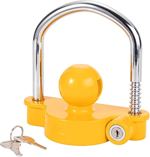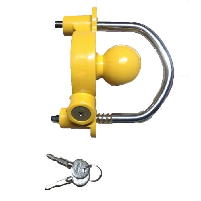 Serrure U Haute Sécurité Pour Caravane Antivol Remorque Et Caravane Pour Attelage, Verrouillage Haute Sécurité Attelage Remorque Voiture SOSALUK Antivol Remorque Attelée et Non Attelée Cadenas Compatible avec la majorité des attelages à bille de 50 mm, il s'adapte à tous vos équipements : remorques domestiques, caravanes de tourisme, véhicules... Son verrouillage en U, avec clé, constitue une ligne antivol robuste pour les crochets de remorque de voiture, de yacht et de camping-car, empêchant ainsi le vol du connecteur. 【Adaptabilité Universelle, Installation Pratique】Serrure d'Attelage Adaptabilité universelle. Il suffit de tourner la clé, de placer la rotule, d'insérer la tige de verrouillage et de suivre les étapes suivantes pour une installation rapide. 【Antivol Exceptionnel, Protection des Biens】Antivol pour Caravane Fabriqué en alliage d'aluminium et en fer, il est durable et possède de solides propriétés anti-coupure et anti-cisaillement. Il convient à une variété de crochets de remorque et dispose de 11 vitesses réglables pour répondre à différents besoins. Que ce soit pour le stationnement quotidien ou les déplacements en extérieur, il assure une sécurité optimale du connecteur. C'est un choix pratique pour la protection antivol des équipements de remorque. Vous comptez passer vos vacances en camping ou vous garez régulièrement votre remorque dans la rue ? Alors, ne vous inquiétez plus. Avec ce cadenas de remorque solide, vous protégez efficacement votre véhicule contre le vol. L'antivol remorque s'adapte à la plupart des têtes d'attelage courantes. En plus, l'installation est un jeu d'enfant ; il suffit de glisser le cadenas sur de la...