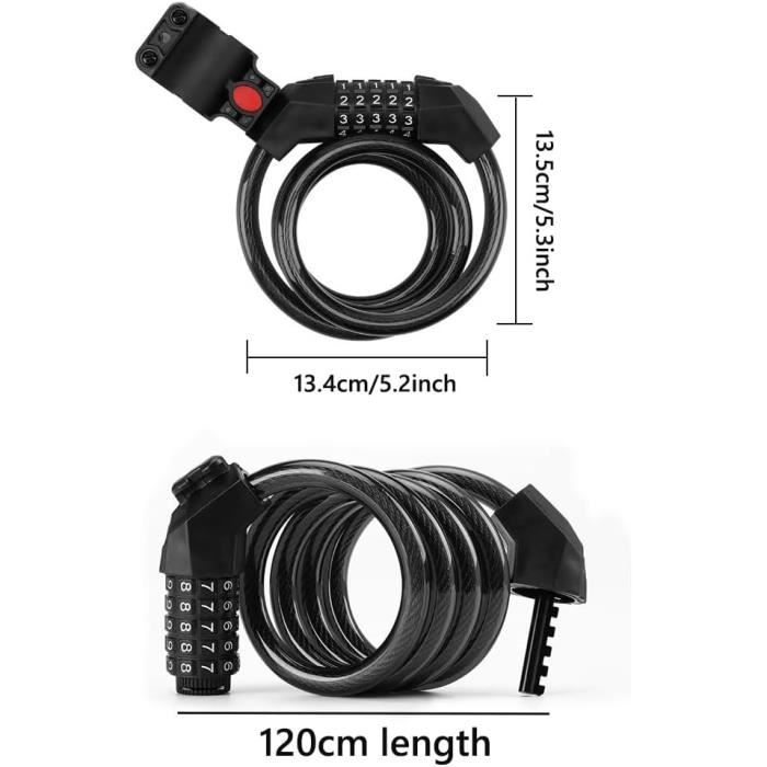 Cadenas Velo Antivol Vélo 120cm X 11mm Avec Code à 5 Chiffres Câble Sécurité Vélo Câble Acier Torsadé Chaîne en acier de 6 mm d'épaisseur, résistante à la corrosion. Très massive et pourtant facile à transporter en enroulant simplement la chaîne de manière compacte autour du tube de selle. Matériau--La chaîne légère protège la peinture avec un chiffon doux GRIFEMA GAK1201-9, Chaîne Antivol Vélo 90 CM, Chaîne Cadenas Vélo 5 Facile à Transporter et à Installer** : Léger et compact, il est facile à transporter et à fixer grâce à son support de fixation inclus. EINFEBEN Antivol pour vélo 120cm à combinaison pour vélo Antivol à... Idéal pour une utilisation quotidienne sans encombrement. Sécurité Maximale avec Code à 5 Chiffres** : Profitez d'une sécurité renforcée grâce à un code à 5 chiffres personnalisable, offrant 100 000 combinaisons possibles. Revêtement PVC Durable** : Le revêtement en PVC protège contre les rayures et les intempéries, assurant une longue durée de vie même dans des conditions extrêmes. Tarana Antivol Vélo 120cm x 11mm avec Code à 5 Chiffres, Câble Renforcé pour Vélo, Scooter, Moto et Portail