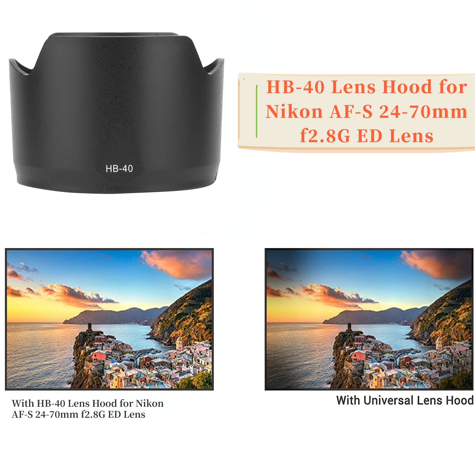 Cikonielf pare-soleil pour appareil photo HB-65 pare-soleil à monture... 【ELIMIBATED EFFECT LIGHT】Le pare- peut éliminer efficacement la lumière indésirable et les reflets pendant le contre-jour, la lumière latérale, le flash ou la photographie de nuit. 【SIMPLE INSTALLATION】ABS Pare- Installation facile, peut être fermement monté sur l'objectif. Pare-soleil Nikon 24-70mm EJ.life Pare-soleil Pour Appareil Photo Pare-soleil Pour Monture D Protection Objectif Anti-reflets Lumière 【SPECIAL FOR】HB-40 ABS Mount Lens Hood Replacement Adapté à l'objectif de la caméra pour AF-S 24-70mm f2., 8G ED. Pare-soleil pour objectif Nikon AF S VR - ZERONE - HB-35 - Blanc... Spécifications : Matériel: ABS Couleur: noir Type: pour baïonnette Liste de colisage: 1 * pare- HB-40 Cikonielf pare-soleil pour monture d'appareil photo HB-N103 pare-soleil