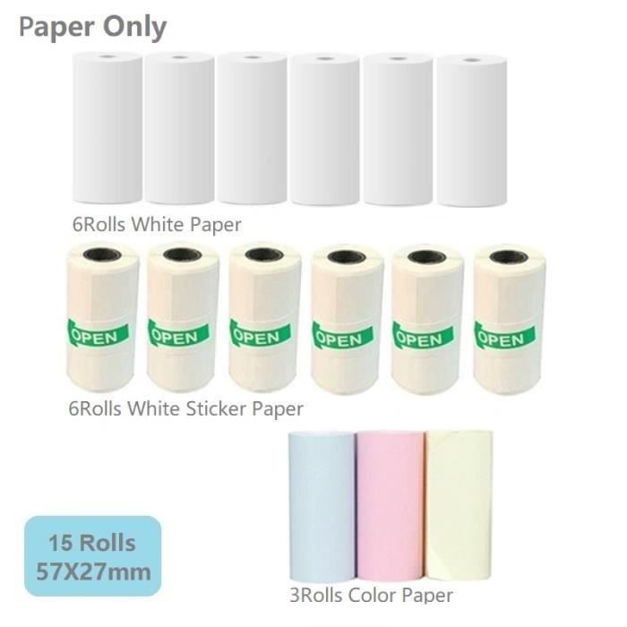 RUR Papier d'imprimante 3pcs Papier Thermique Autocollant Anti-Friction Disponible en 4 couleurs, il permet d'imprimer des photos, des notes ou des designs créatifs. Appareil Photo Thermique Recharge Papier Autocollant Pour Kidywolf - Le Papier Thermique Autocollant Utilisation facile: Découpez le papier thermique à la taille souhaitée à l'aide de ciseaux. MOON-5 rouleaux de papier autocollant imprimable papier thermique... RUR Papier d'imprimante 3pcs Papier Thermique Autocollant Anti-Friction... Installation pratique: L'installation du papier thermique est rapide et facile, mais veillez à insérer le papier dans la bonne direction. Grâce à son dos autocollant, il est simple à appliquer sur diverses surfaces Une mauvaise installation empêchera l'impression. Dimensions : 57 mm x 25 mm, compatible avec la plupart des mini-imprimantes thermiques. Applications créatives: Parfait pour imprimer des photos, créer des notes adhésives, des étiquettes, des carnets d'erreurs ou des stickers personnalisés. Papier polyvalent pour appareil photo enfant: Comprend 10 rouleaux de papier thermique, y compris des papiers autocollants blancs.