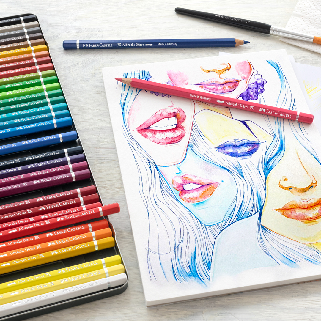 Crayon Aquarelle Diamètre 3.8 Mm Coffrets De Marqueurs Aquarelle Albrecht Dürer De Faber-Castell | Le Crayon De Couleurs Aquarellables Acheter Crayon aquarelle Albrecht Dürer - 3,19 €! #Faber-Castell: 117601 - Avec 250 ans d'expérience combinés avec des matières premières de la plus haute qualité, on obtient un résultat vibrant sans précédent avec un effet aquarelle Coffret crayon de couleur aquarelle A Durer Faber Castell | Surdiscout Une résistance à la lumière et brillance inégalée. CRAYON DE COULEUR 102 crème aquarellable Albrecht Dürer Faber-Castell... Peut être mélangé avec de l'eau pour former un nombre illimité de nouvelles teintes., Disponible en 120 couleurs. Pour le nec plus ultra en matière de crayons d'artiste, découvrez les prestigieuses gammes d'aquarelles Polychromos et Albrecht Dürer richement pigmentées. L'ingénieuse gamme Creative Studio s'adresse aux étudiants et aux amateurs sans sacrifier la qualité qui distingue Faber-Castell Le tout complété par une vaste gamme de carnets de croquis de qualité supérieure, de techniques mixtes et d'aquarelle pour chaque projet artistique. Qualité supérieure., Luxe., Expertise., Seulement le meilleur.