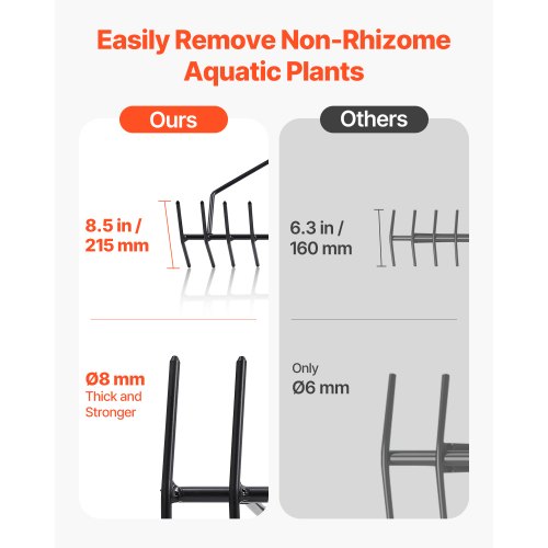 Construction durable : Ce coupe-herbe d'étang utilise des lames, un manche et des supports en acier inoxydable et en acier à outils, offrant une excellente résistance à la corrosion. Ce coupe-herbe aquatique contribue à restaurer l'écosystème et vous permet de profiter d'une eau propre et claire. Longueur de la corde : 30 pi / 9 m 1 x manuel d'utilisation Mode d'emploi Inclus : Caractéristiques principales Réglage flexible de la largeur Ce râteau à mauvaises herbes aquatiques offre deux largeurs de coupe réglables (max., 1219 mm, min. Contenu du coffret 1 x coupe-herbe pour lac, 1 x tige de poignée, 1 x tige de montage 920 mm), de lames en acier robustes, d'un manche en acier inoxydable et d'une corde de 9 m. Description du produit Coupe-herbes du lac Notre coupe-herbes pour lac est un outil durable et résistant à la rouille, doté de deux largeurs de coupe réglables (max., 1219 mm, min. 920 mm), facilitant la gestion de différentes densités de plantes et espaces. Conception sécurisée : Ce coupe-herbe aquatique est doté d'une protection en silicone pour éviter le détachement de la lame et réduire les risques de blessures lors du stockage ou de la manipulation Coupe Herbe Aquatique,Largeur Max VEVOR 1219 mm,Coupe Herbes 36 po / 920 mm (largeur minimale) Les matériaux durables restent tranchants et vous permettent de désherber sans effort pendant des années. Largeur réglable : Le coupe-herbe aquatique est doté de deux largeurs de coupe réglables par bouton-pression (max., 1219 mm, min., 920 mm). VEVOR Rateau dechaumeur de remorquage derriere, 1219 mm, rateau... Utilisation facile : Notre coupe mauvaises herbes lac est équipée d'une corde en nylon de 9 m pour une portée étendue. Conçu pour résister aux environnements humides sans rouiller 2 x tôles en acier inoxydable, 1 x pierre à aiguiser Désherbage Lac VEVOR Coupe Herbe Aquatique, Largeur Max 1219 Mm, Coupe Mauvaises Enlever Nénuphars Coupe-Herbe sans Fil avec Batterie et Laes en étal Coupe-Herbe... Agissez dès maintenant pour transformer votre cours d'eau ! Conception peu encombrante Cet outil de coupe-étang compact est facile à démonter et à ranger dans votre garage ou votre abri de jardin, sans prendre trop de place. Utilisation à long terme Fabriqué avec des lames en acier robuste, un cadre en fer galvanisé et une poignée en acier inoxydable, ce coupe-herbe pour lac est équipé d'une corde en nylon haute résistance de 9 m pour un fonctionnement fluide. 9 vis M6 x 30 + écrous, 1 x sac à outils Il est doté d'une bande de protection pour éviter les coupures et protéger les lames, un rangement sûr. 2 x ensembles de lames (avec bandes résistantes aux coupures) Montage rapide et utilisation facile : vous gagnez du temps.