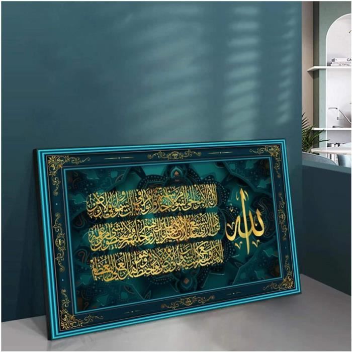 Merveilleux cadeau : la peinture sur toile est un bon choix de cadeau pour votre amoureux, votre famille, vos amis ou vos collègues de travail. Tableau Religieux Musulman Salon ZXHYWYM Impression Sur Toile Islamique Ayatul Kursi - Calligraphie Arabe - Peinture Du Coran - Décoration D'intérieur Musulmane Encadrée (1, (40,6 X Peinture Coran Décoration Intérieur 30.5x61cm Nous utilisons des équipements de pointe pour garantir des couleurs vives et une durabilité durable. Calligraphie arabe d'Ayatul Kursi Ayat tul Kursi Sourate Al Baqarah 2... En raison des problèmes d'affichage et de réglage du moniteur, les couleurs réelles de la toile peuvent être légèrement différentes de celles des images de l'annonce. Veuillez mesurer le mur avec précision et choisir une taille appropriée, l'image de la scène n'est pas réelle à titre de référence uniquement. Feuille d'or Wall Art Ayatul Kursi Coran Calligraphie Arabe Toile... Chaque panneau de toile que nous expédions est bien emballé dans une boîte en carton solide pour le maintenir stable et éviter les dommages causés par l'expédition. Nous créons chaque toile avec une grande attention aux détails et vérifions la qualité, nous fournissons un excellent produit pour toutes les occasions où vous en avez besoin. Matériaux de qualité supérieure : l'art mural islamique sur toile de qualité supérieure avec la technologie d'impression HD, avec une excellente clarté et des couleurs vives, imperméable à l'eau, résistant à la décoloration. Autocollant de décoration murale islamique, étique... – Grandado Impression sur toile moderne - Décoration murale unique - Complément artistique parfait sur le mur. Très facile à accrocher et à décorer votre mur.